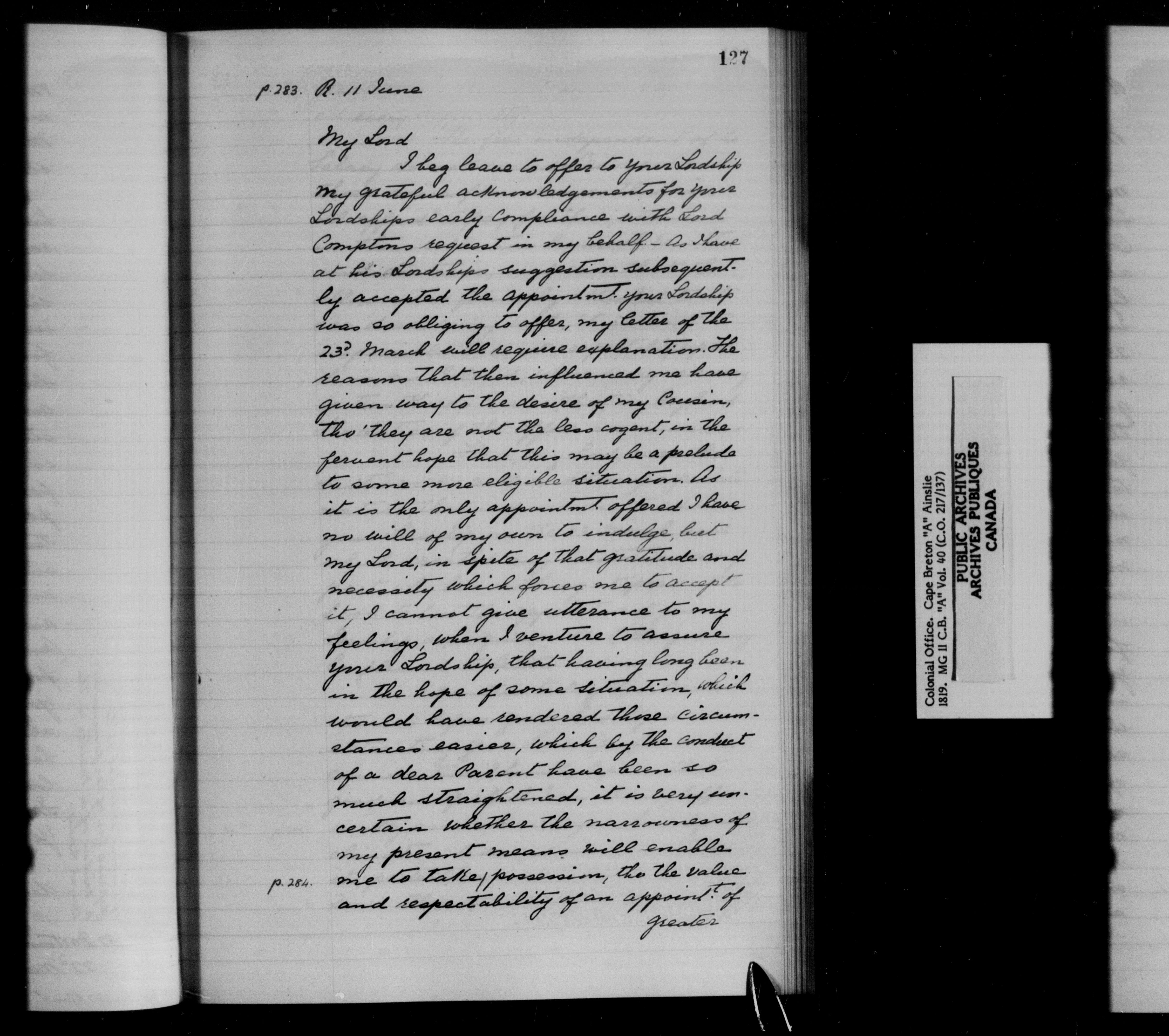 Great Britain: Public Record Office, Original Correspondence, Cape Breton A, C.O. 217 - 11536