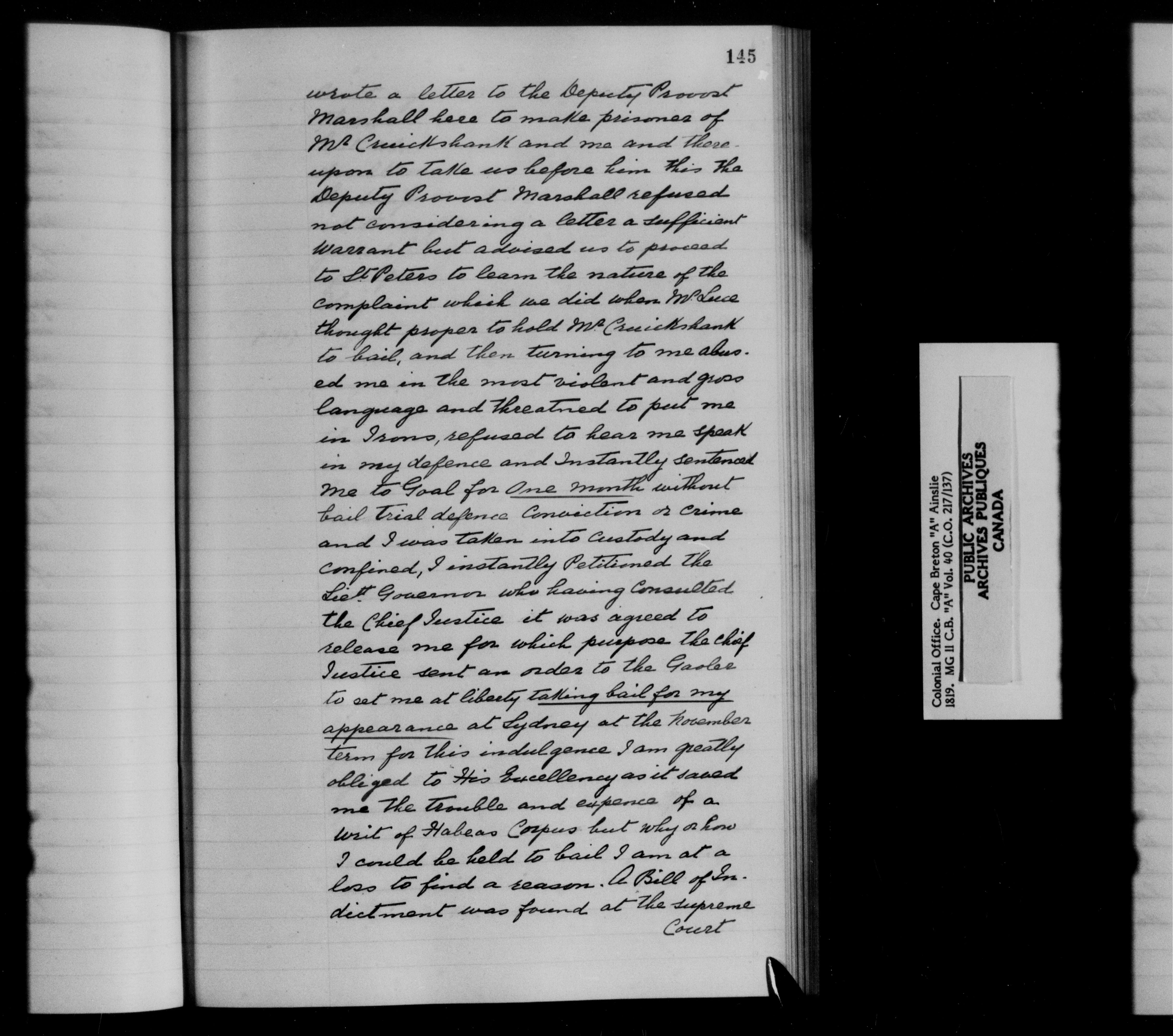 Great Britain: Public Record Office, Original Correspondence, Cape Breton A, C.O. 217 - 11536
