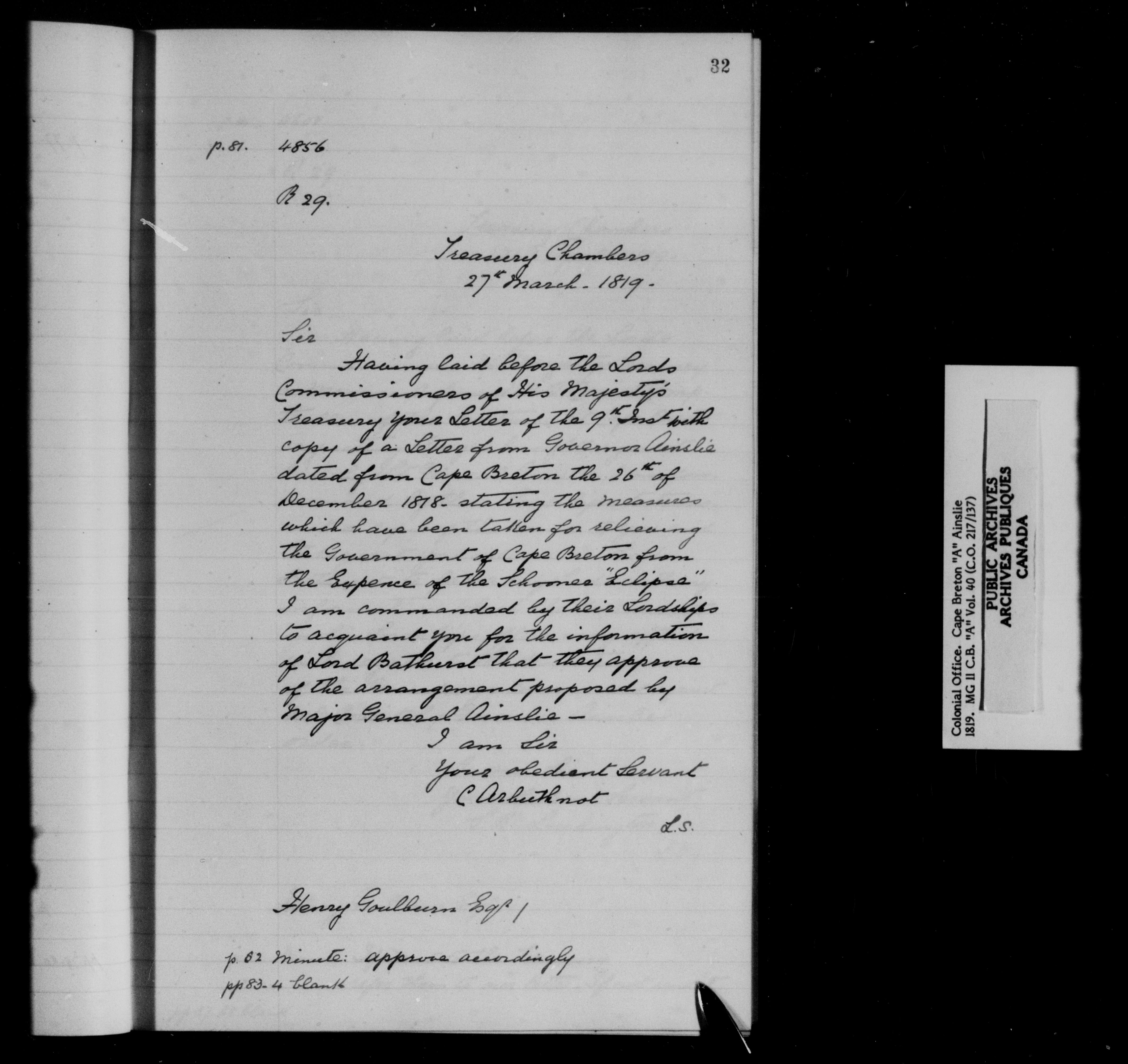 Nova Scotia and Cape Breton, Original Correspondence (CO 217) : C-11536