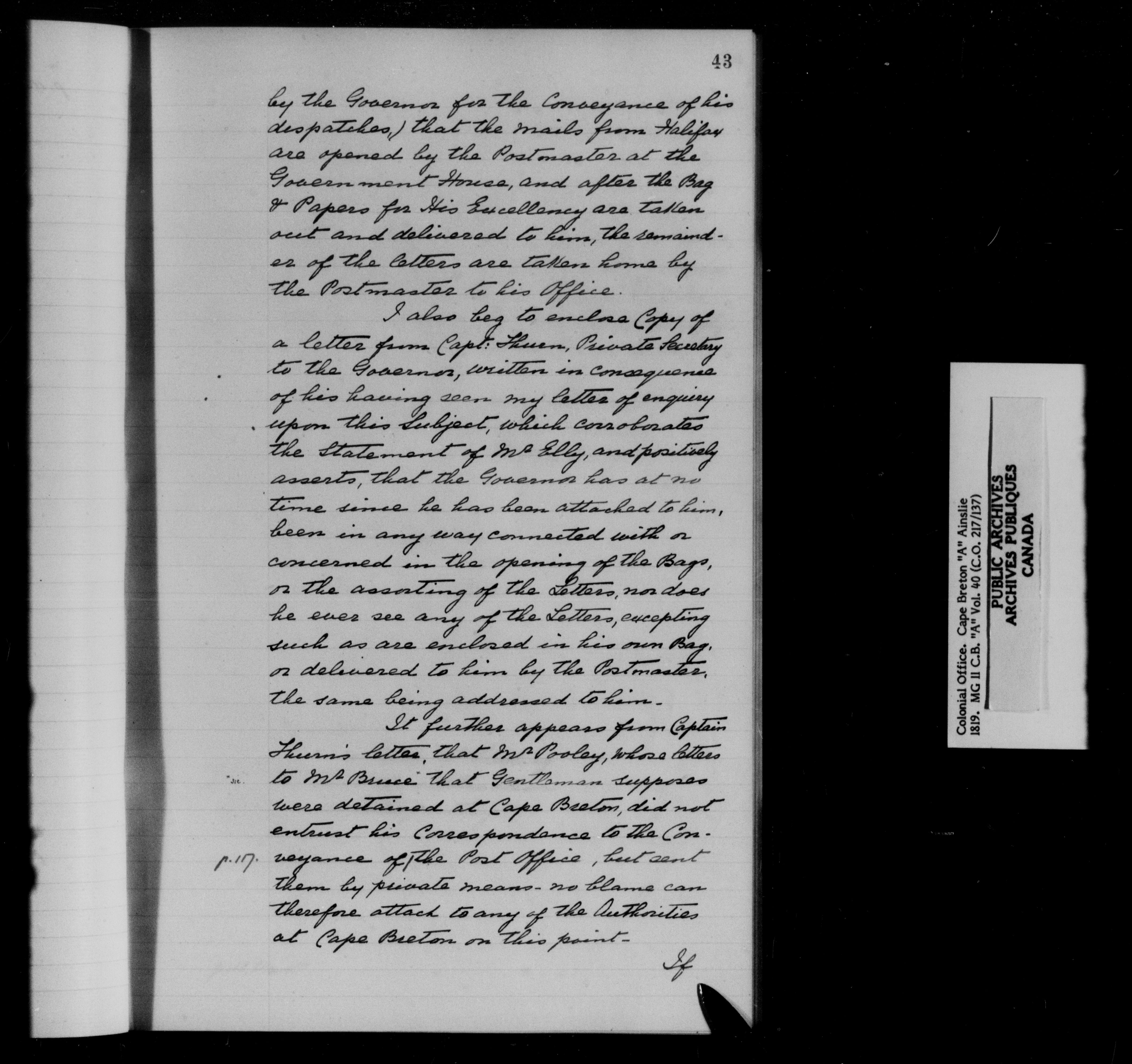 Great Britain: Public Record Office, Original Correspondence, Cape Breton A, C.O. 217 - 11536