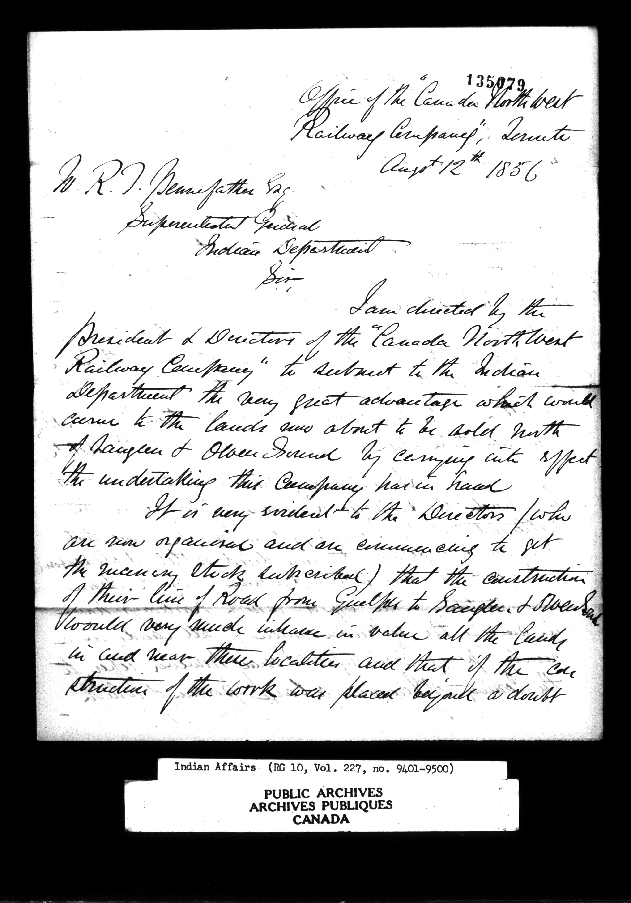 Department of Indian Affairs : Office of the Civil Secretary in the Province of Canada - 11538