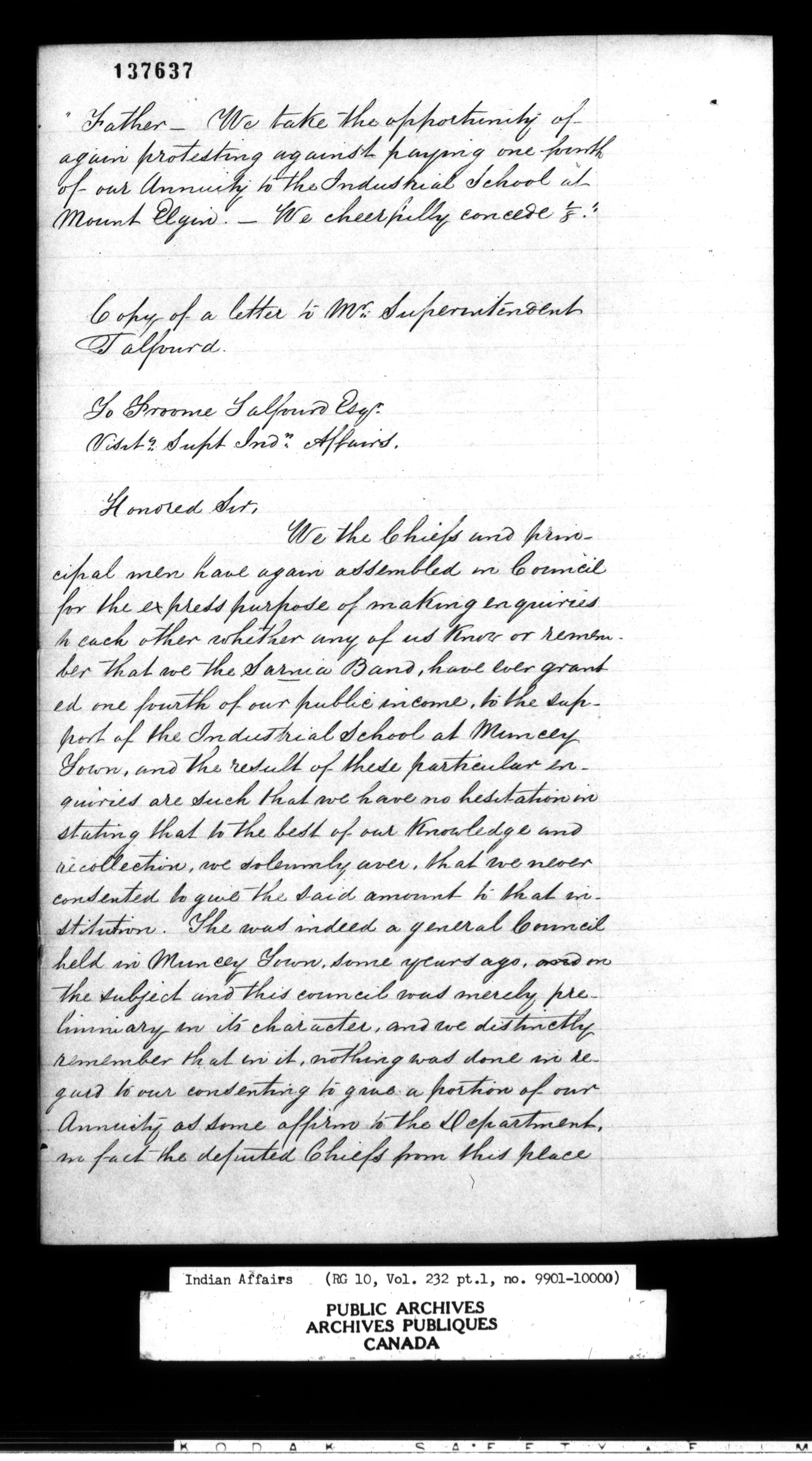 Department of Indian Affairs : Office of the Civil Secretary in the Province of Canada - 11540