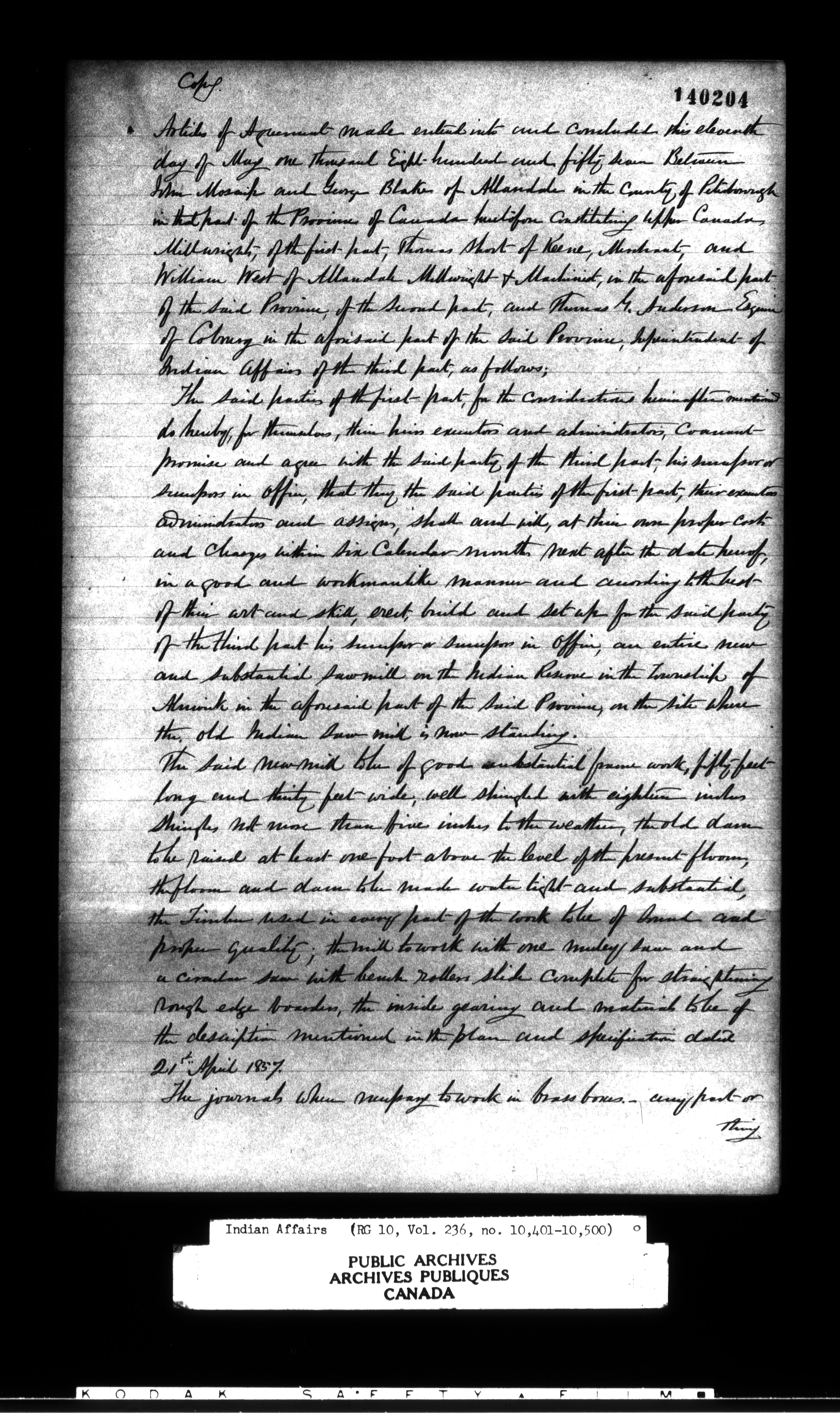 Department of Indian Affairs : Office of the Civil Secretary in the Province of Canada, 1844-1861 : C-11542