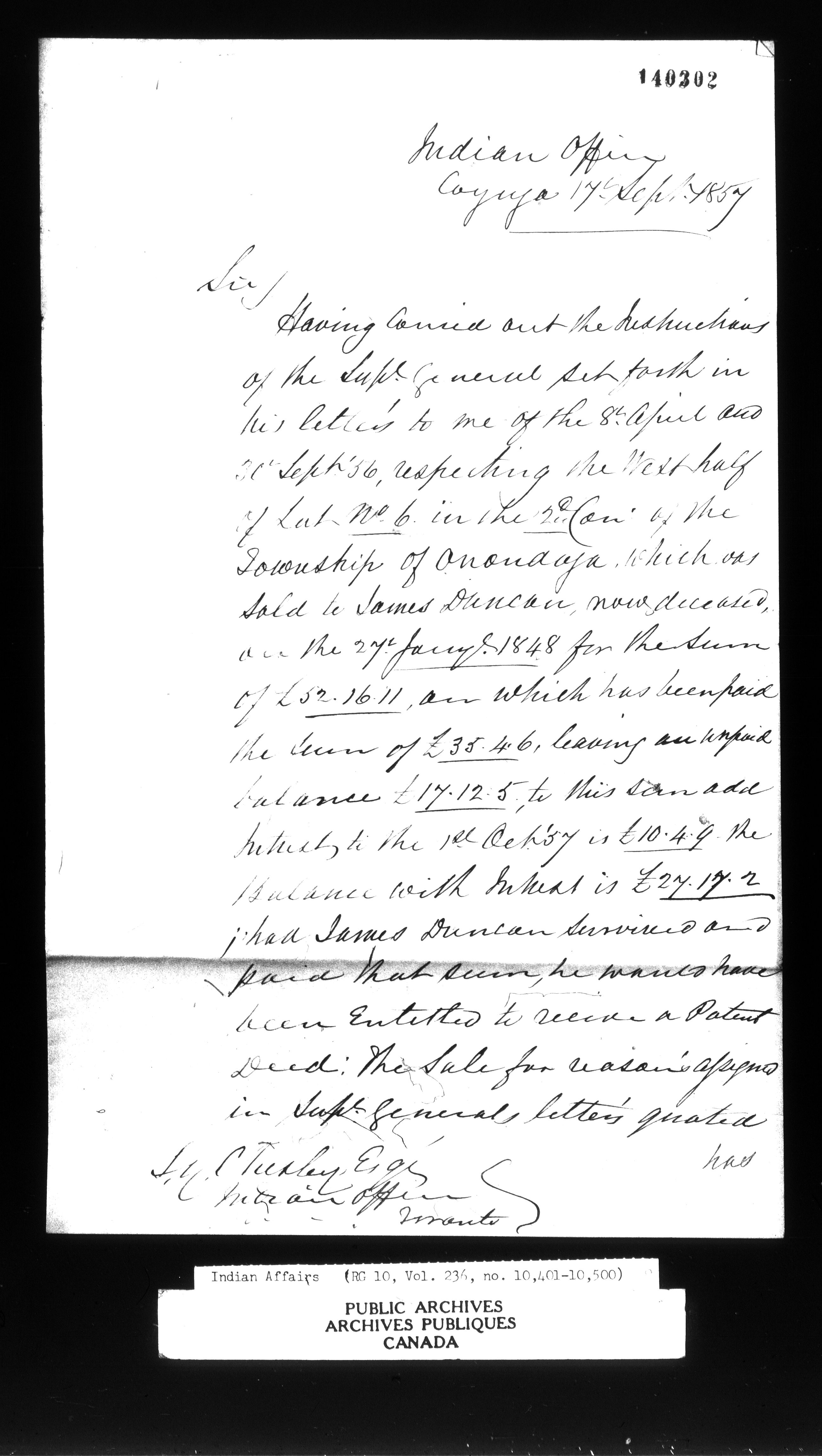 Department of Indian Affairs : Office of the Civil Secretary in the Province of Canada - 11543