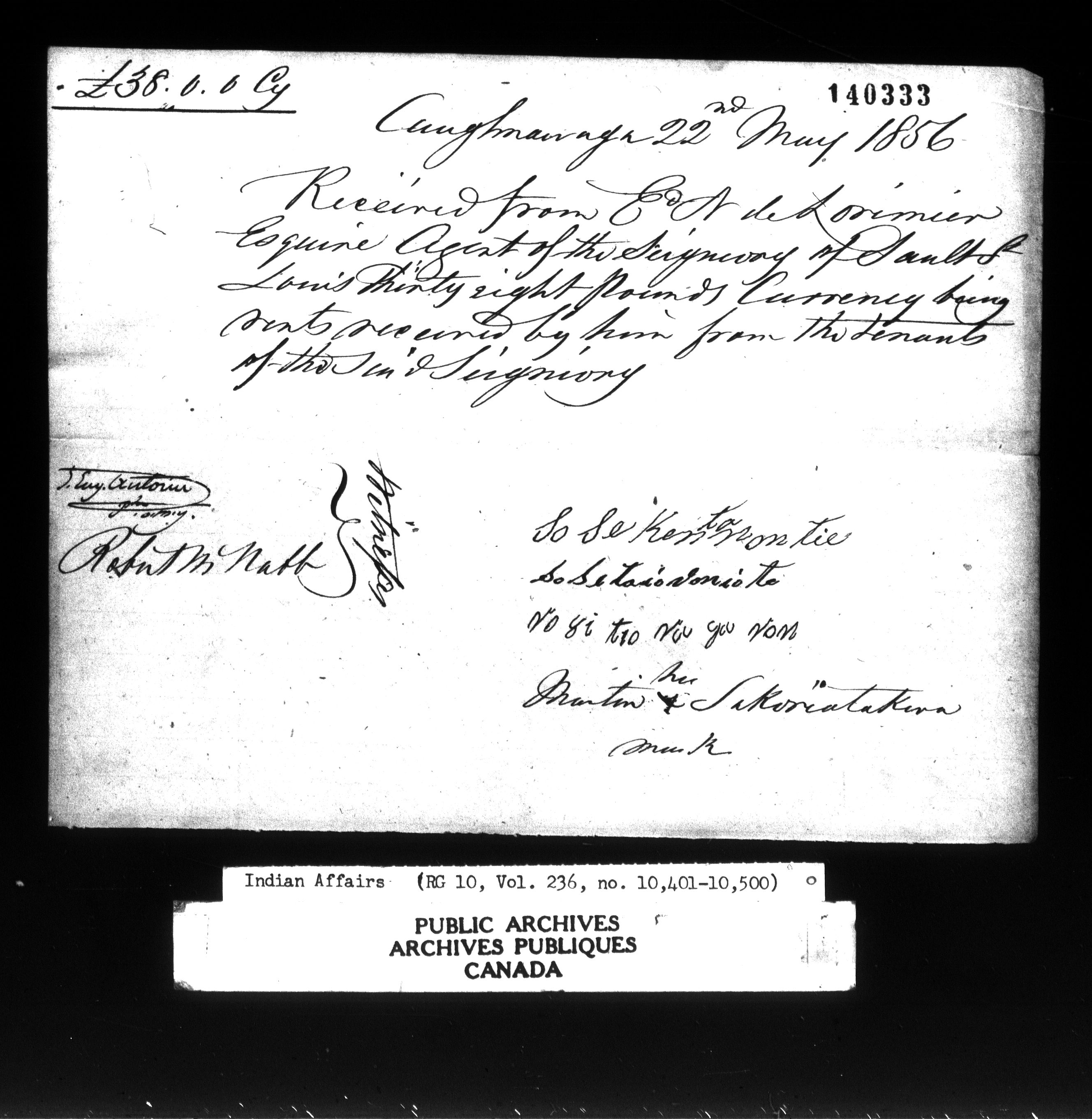 Department of Indian Affairs : Office of the Civil Secretary in the Province of Canada - 11543