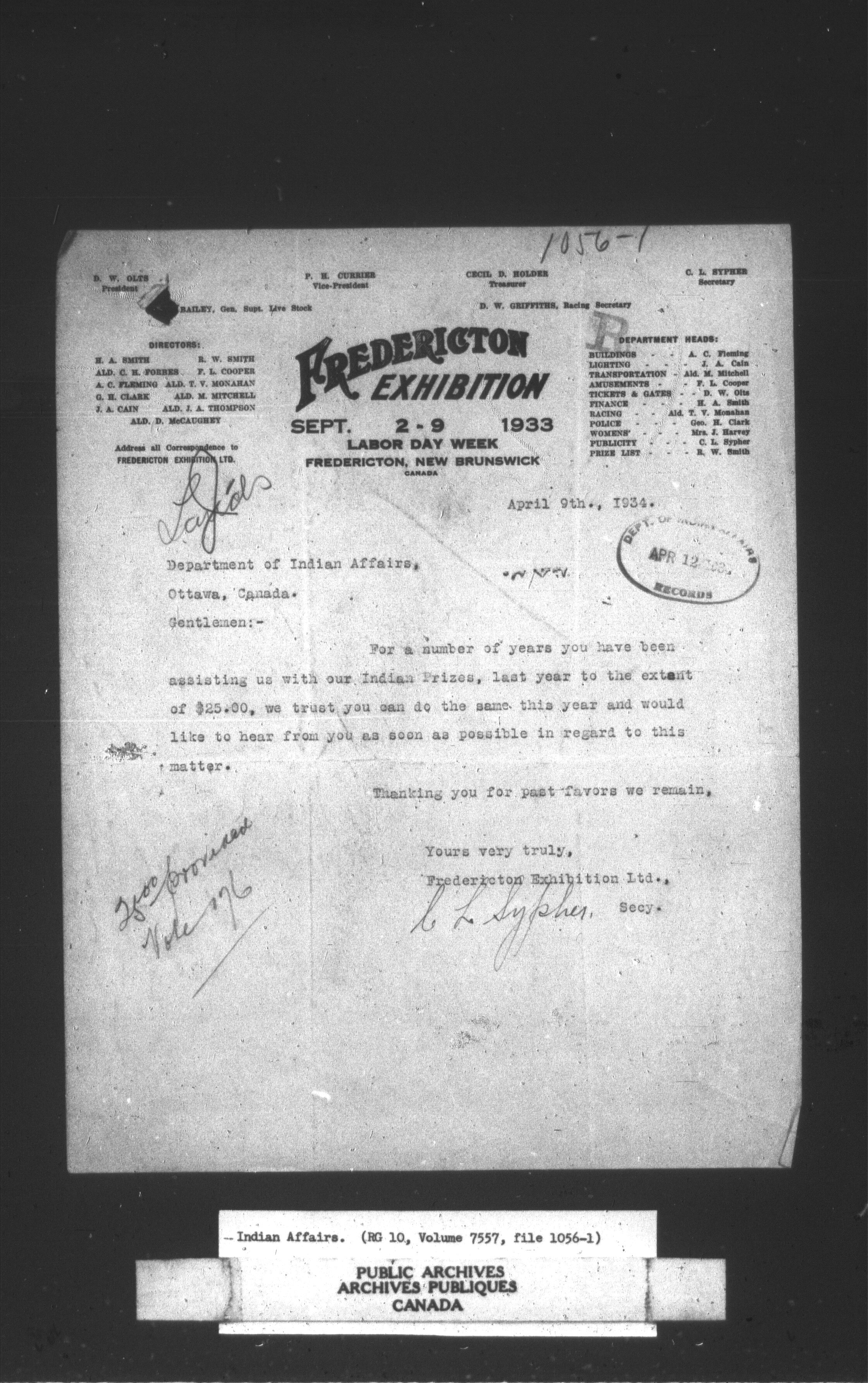 Department of Indian Affairs, Headquarters central registry system : thousand series - C-11545