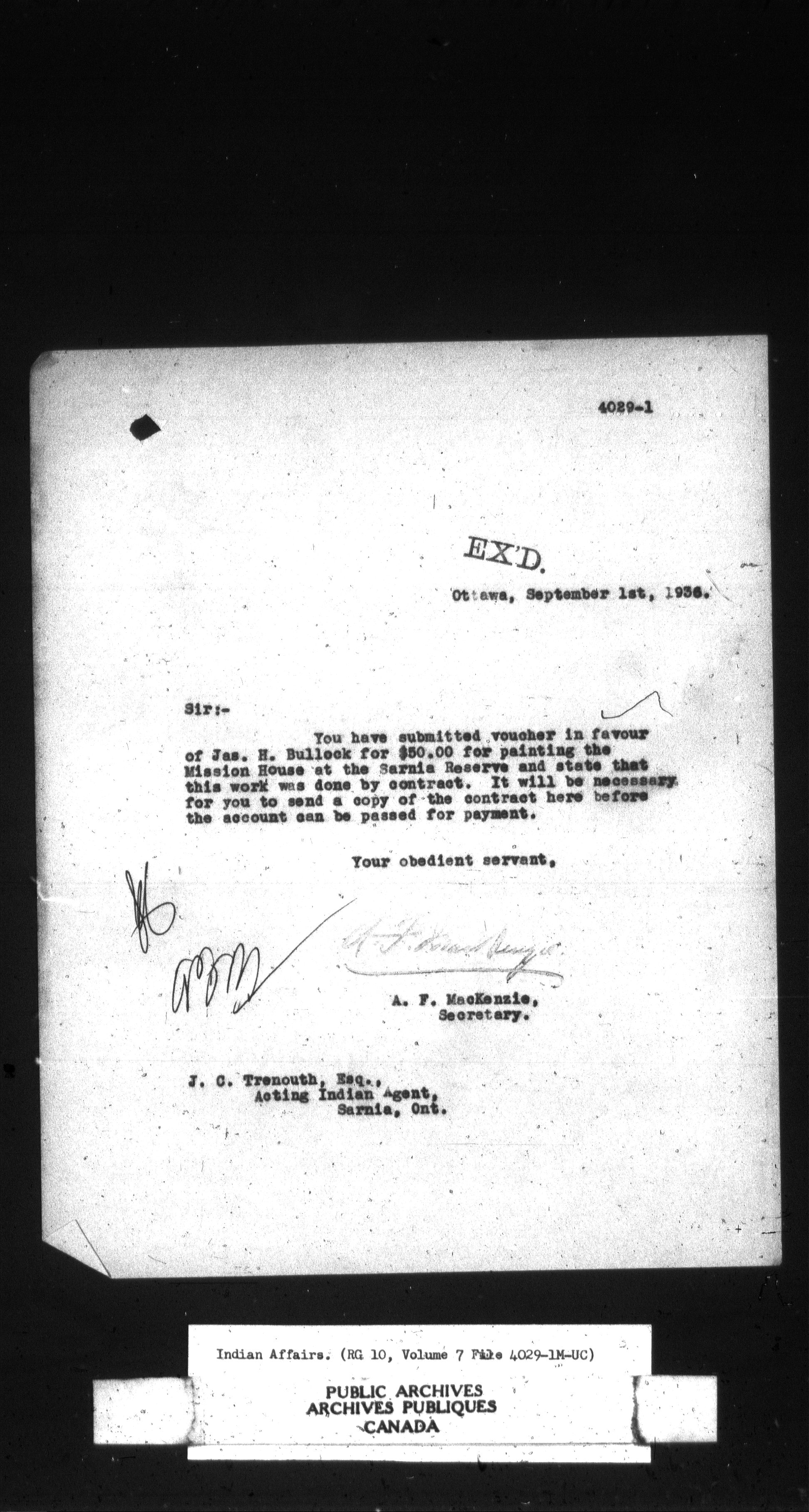 Department of Indian Affairs, Headquarters central registry system : thousand series