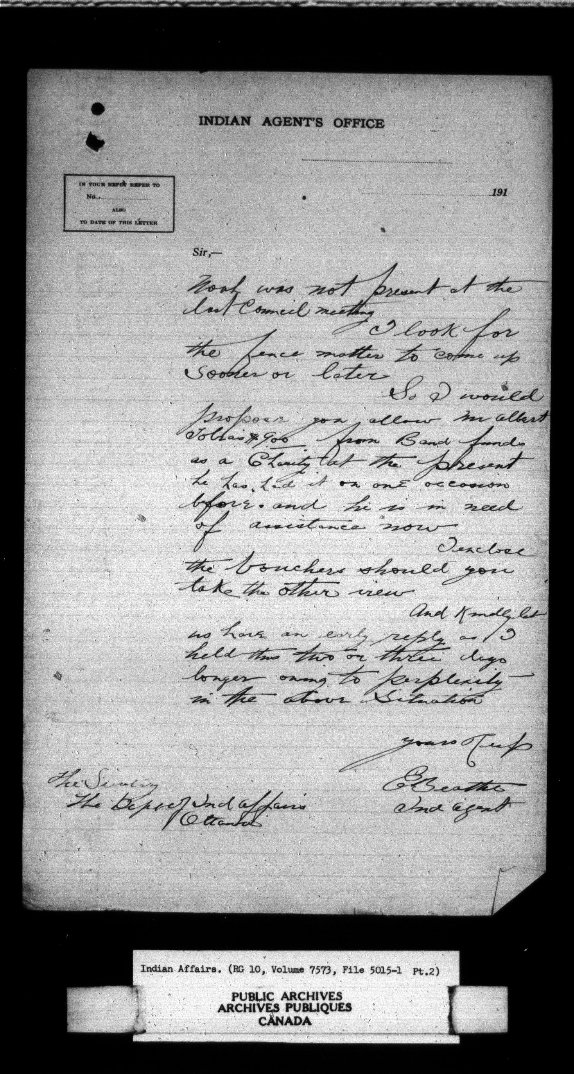 Department of Indian Affairs, Headquarters central registry system : thousand series - 11553