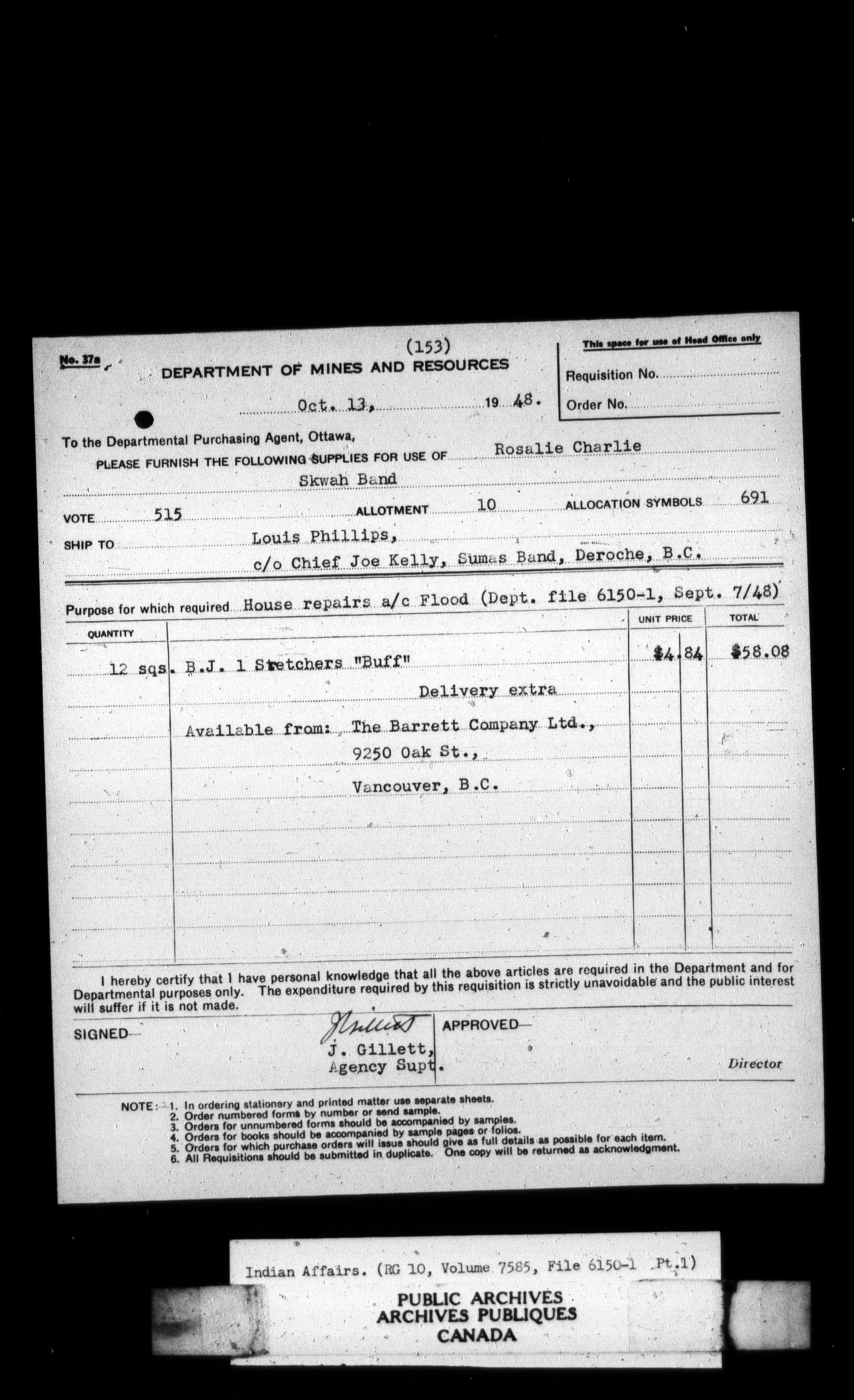 Department of Indian Affairs, Headquarters central registry system : thousand series - 11559