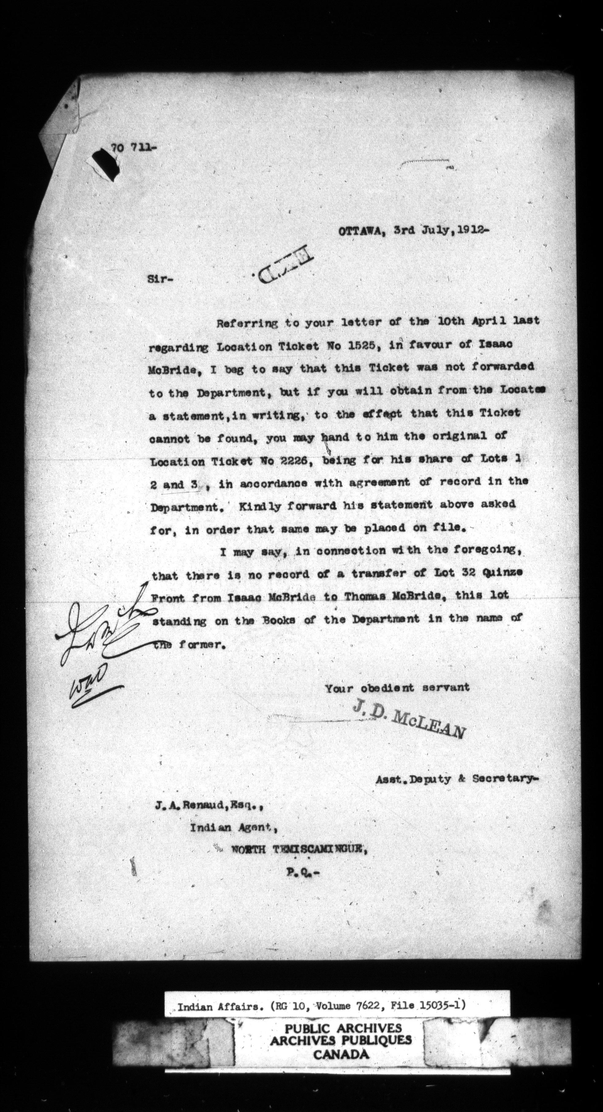 Department of Indian Affairs, Headquarters central registry system : thousand series : C-11582