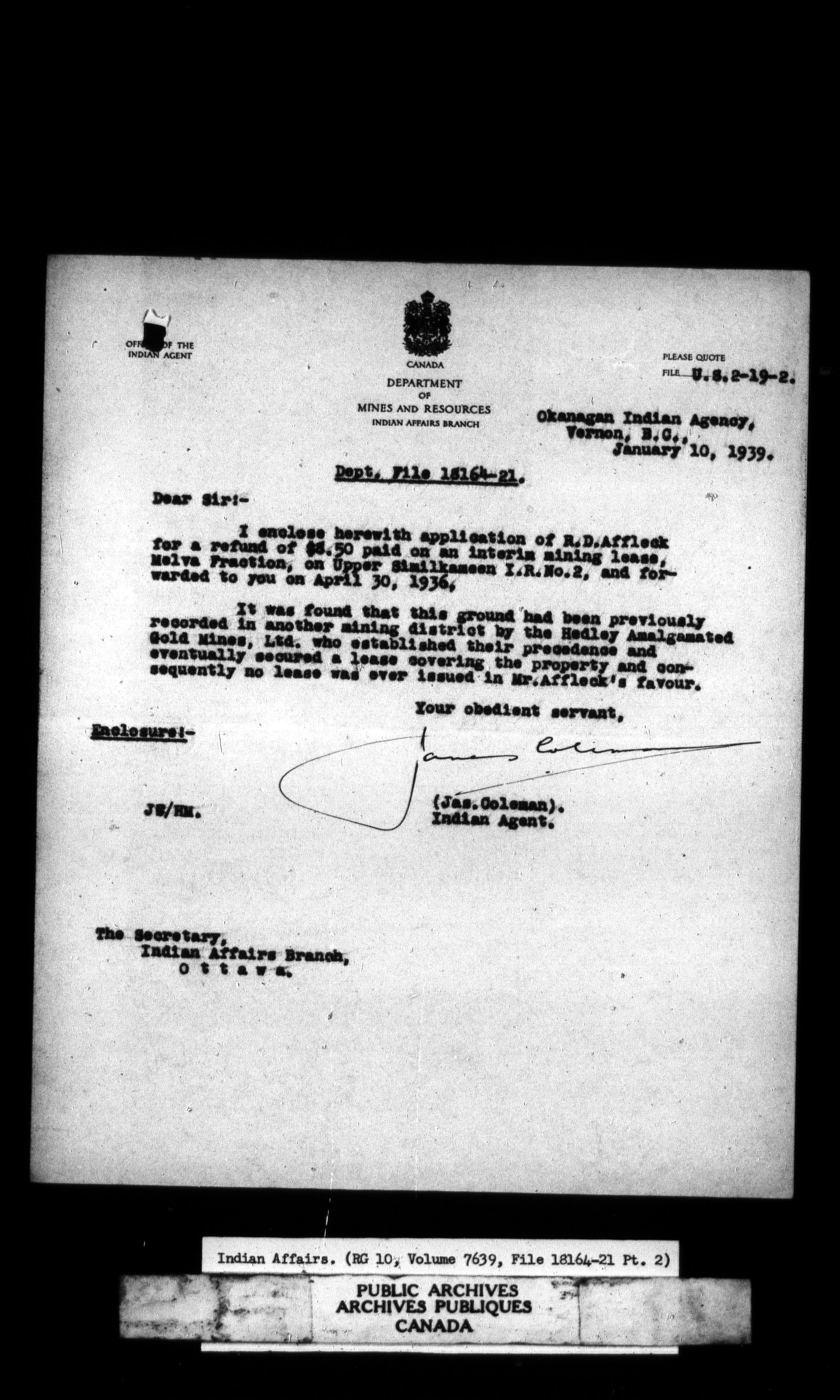 Department of Indian Affairs, Headquarters central registry system : thousand series - 11594