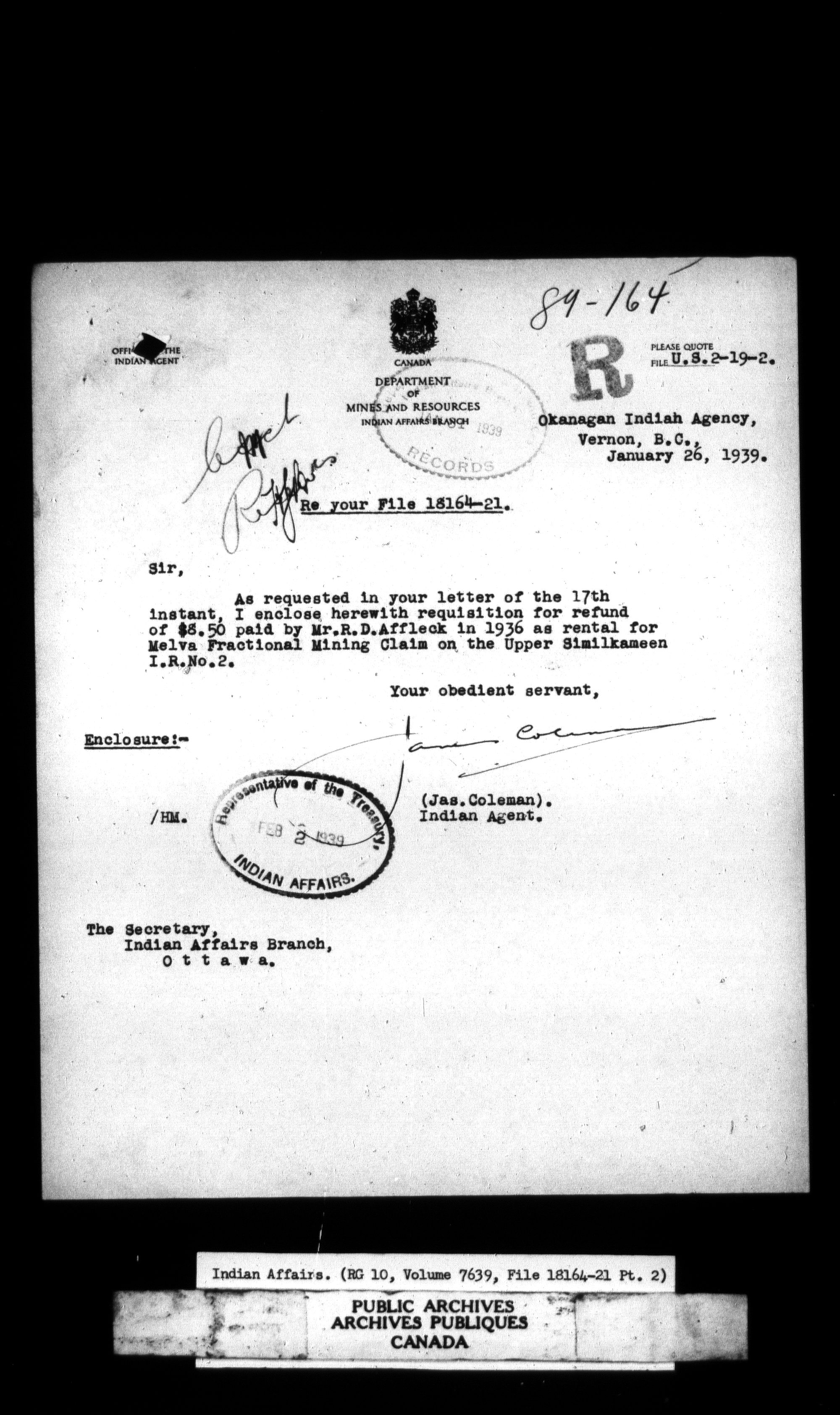 Department of Indian Affairs, Headquarters central registry system : thousand series - 11594