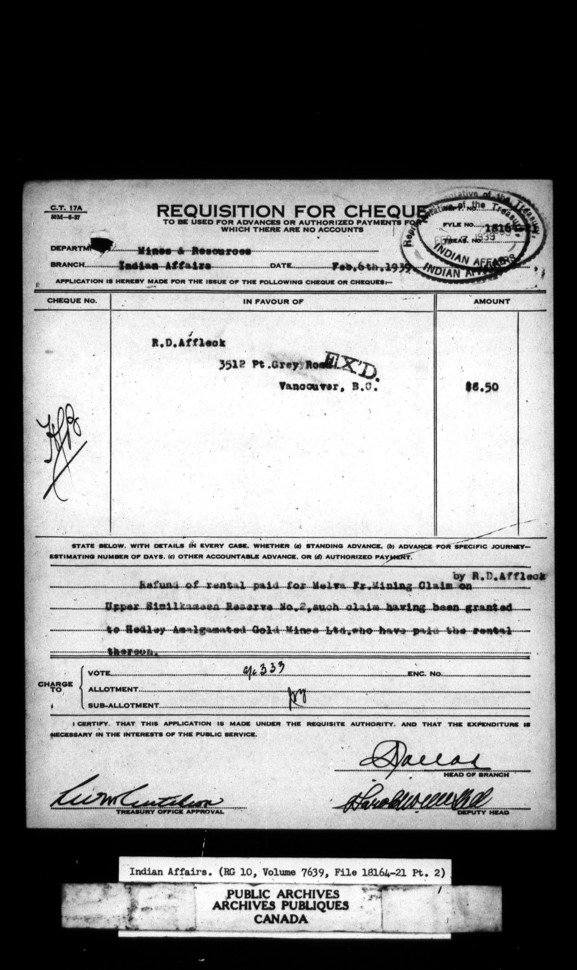 Department of Indian Affairs, Headquarters central registry system : thousand series - 11594
