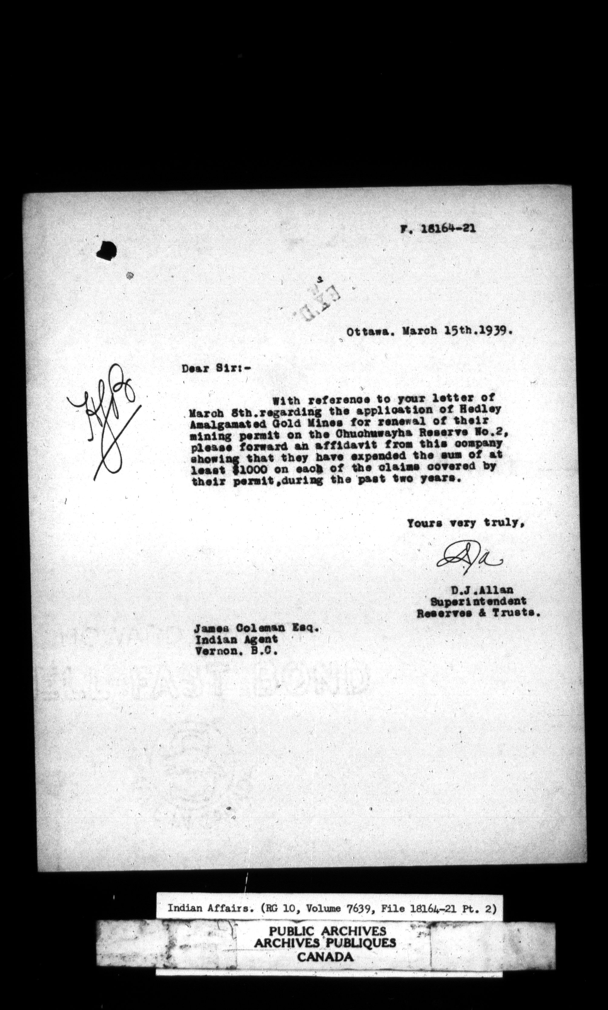 Department of Indian Affairs, Headquarters central registry system : thousand series - 11594
