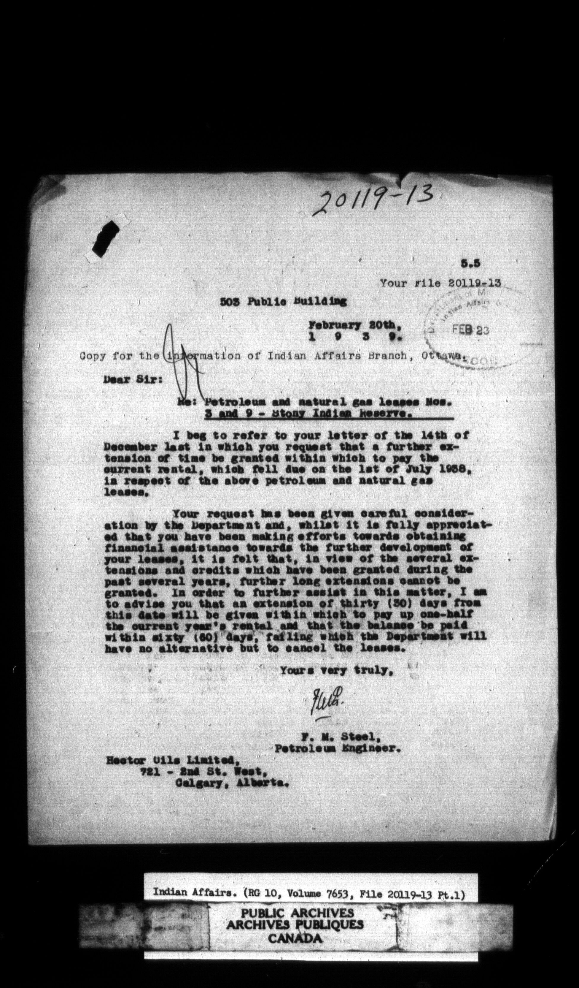 This reel covers: Volume 7653, File 20119-13, Pt. 1 to Volume 7655, File 20120-10, Pt. 1