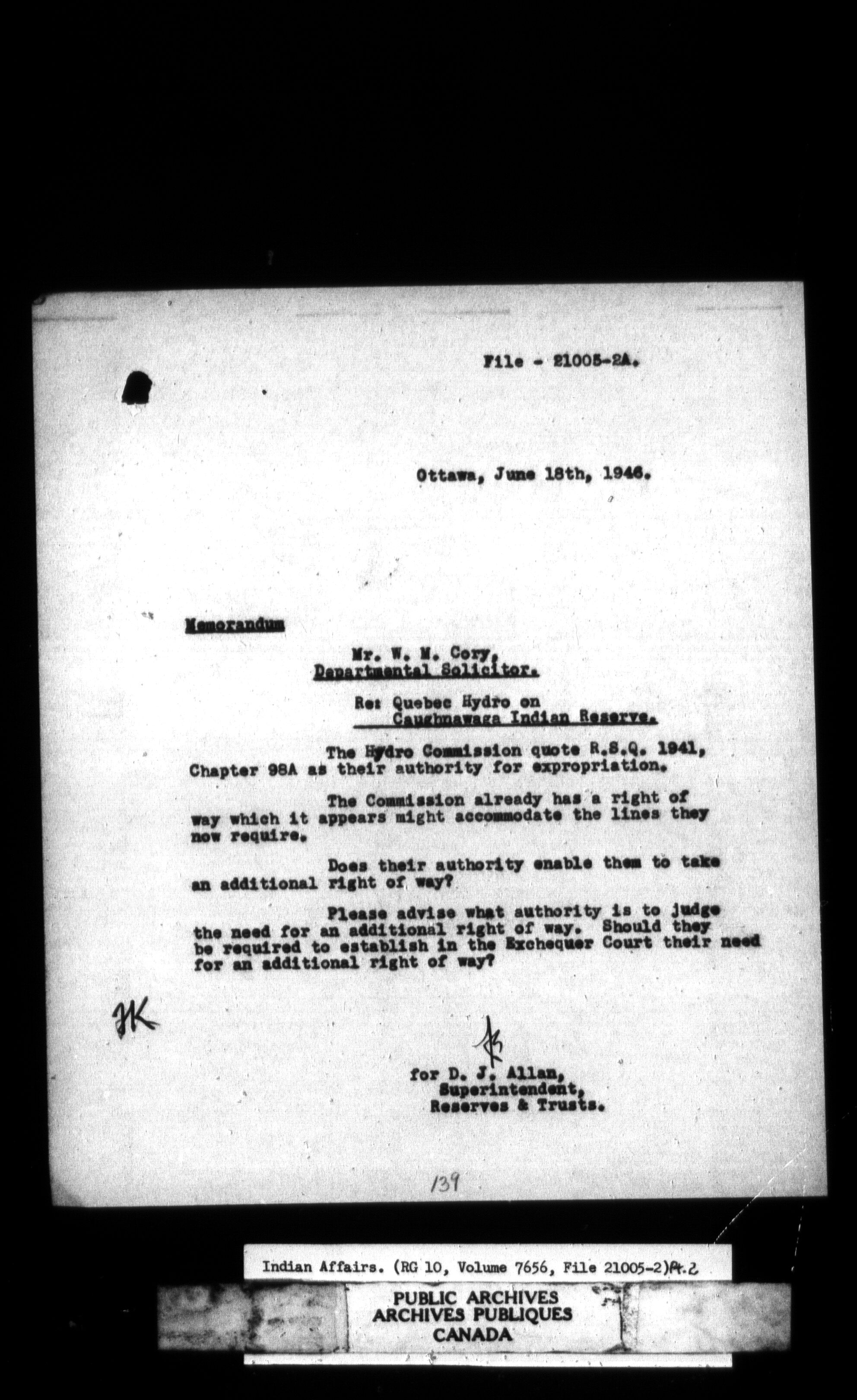 Department of Indian Affairs, Headquarters central registry system : thousand series