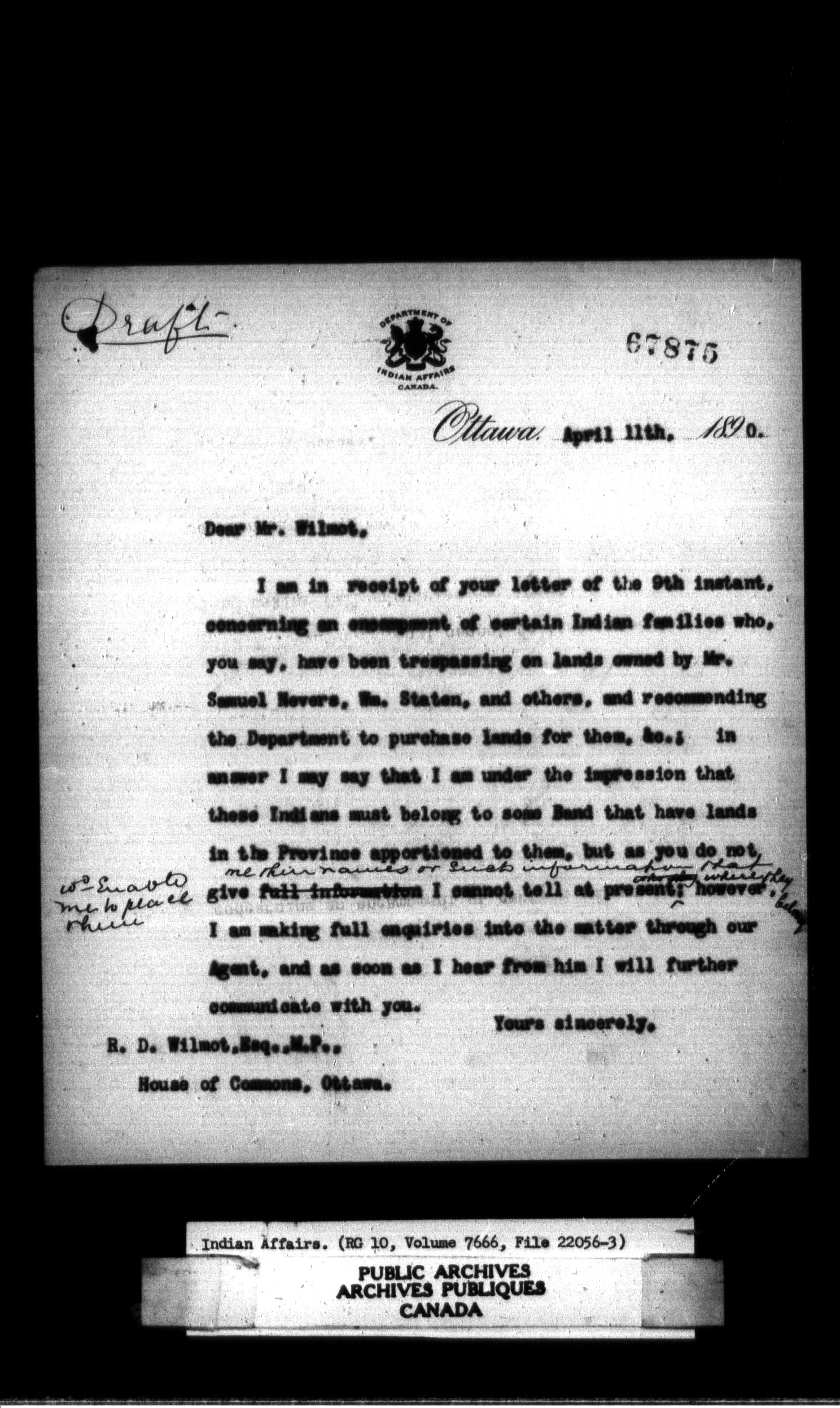 Department of Indian Affairs, Headquarters central registry system : thousand series - 11610