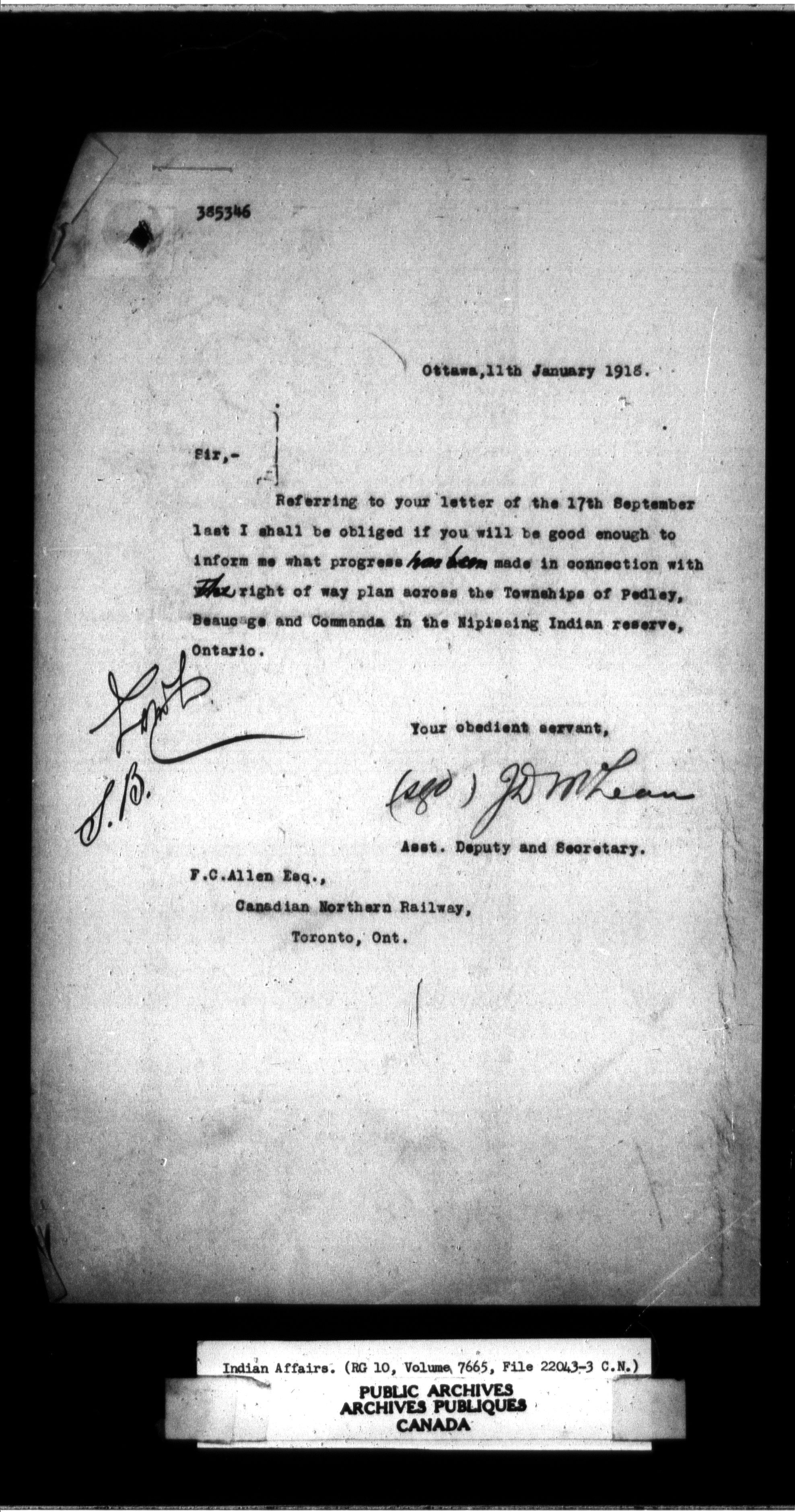 Department of Indian Affairs, Headquarters central registry system : thousand series - 11610