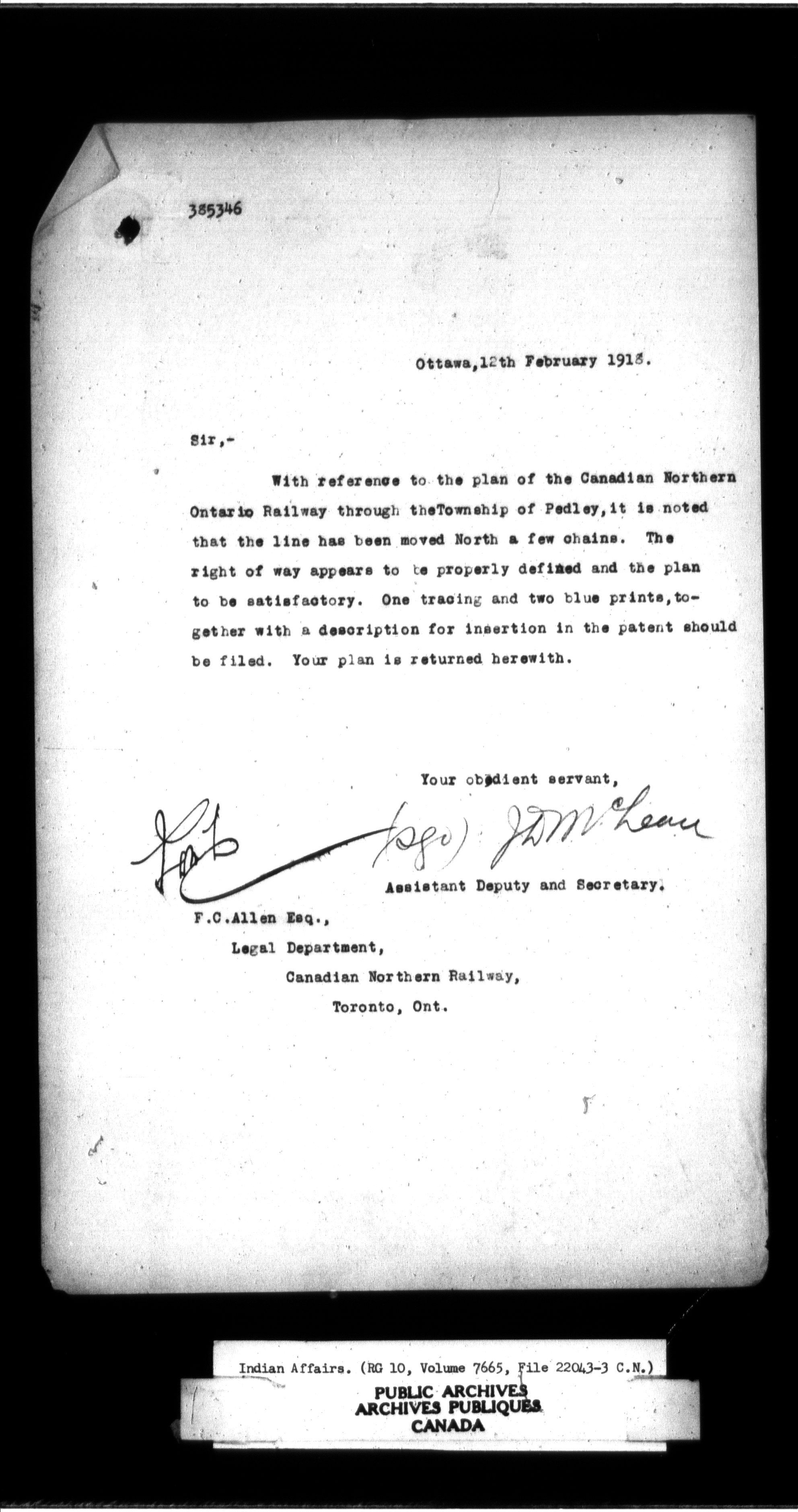 Department of Indian Affairs, Headquarters central registry system : thousand series - 11610
