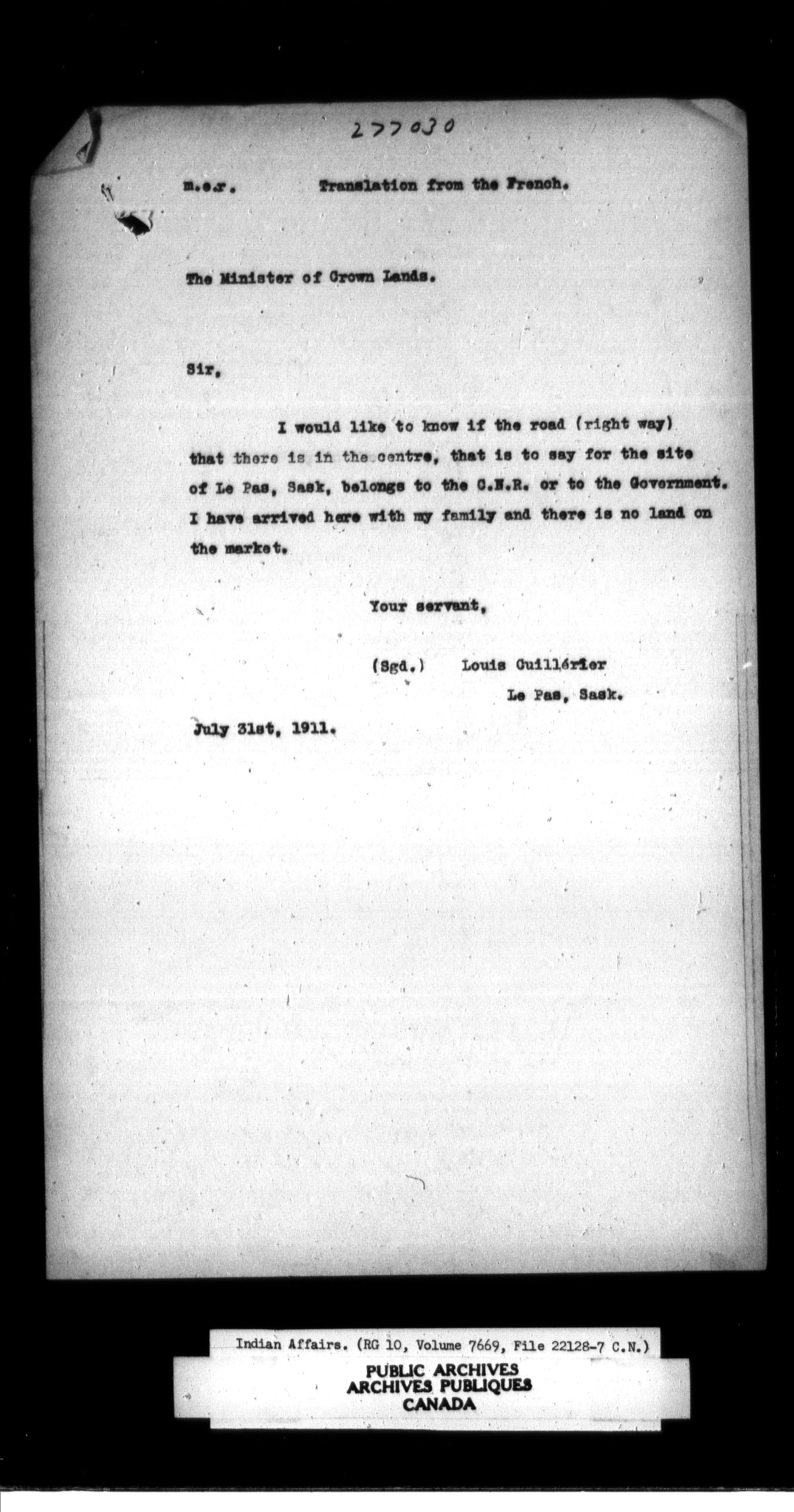 Department of Indian Affairs, Headquarters central registry system : thousand series - 11611