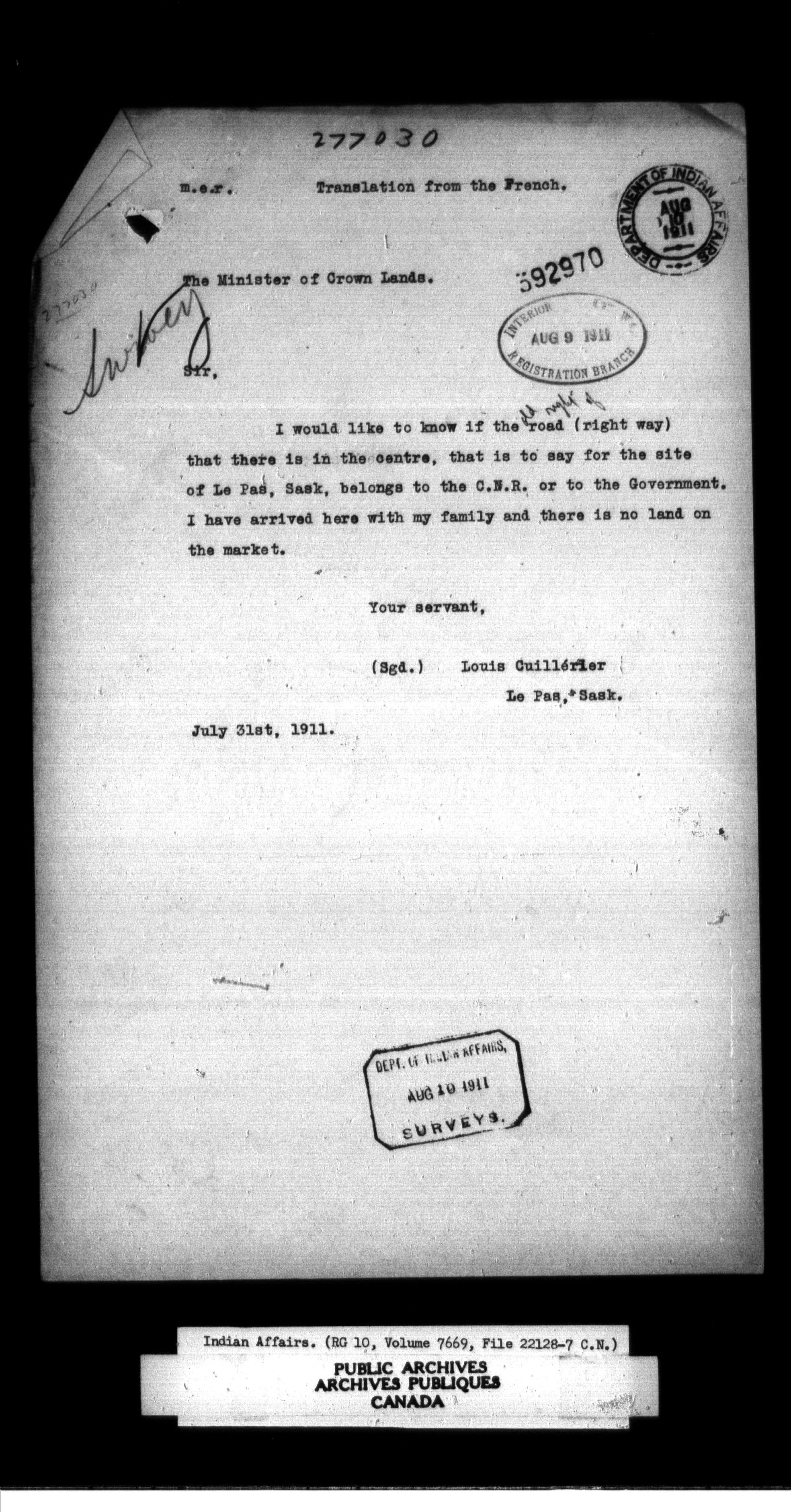 Department of Indian Affairs, Headquarters central registry system : thousand series - 11611