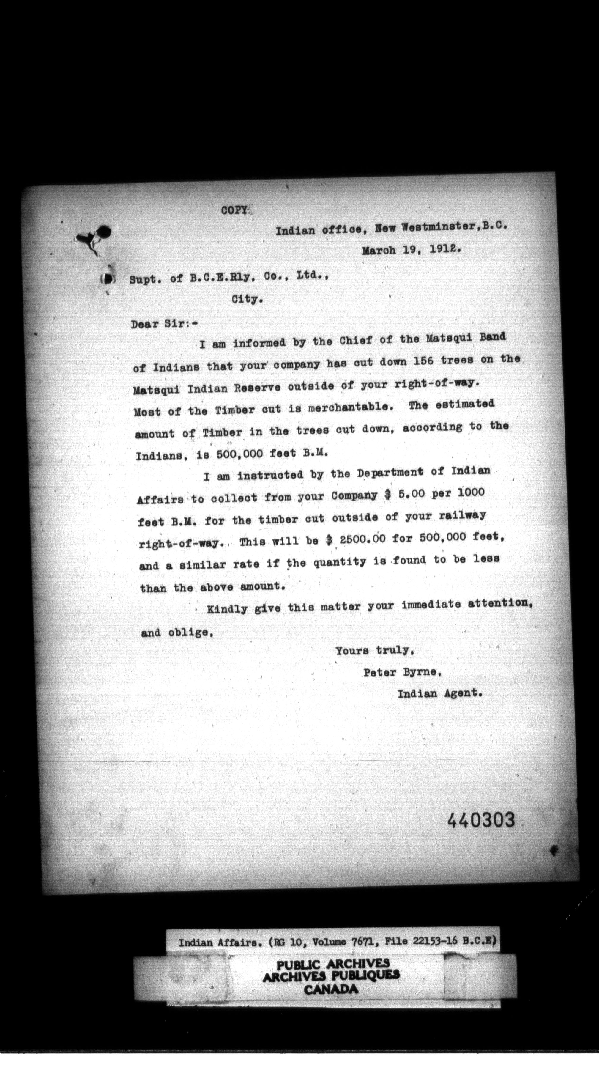 Department of Indian Affairs, Headquarters central registry system : thousand series - 11612