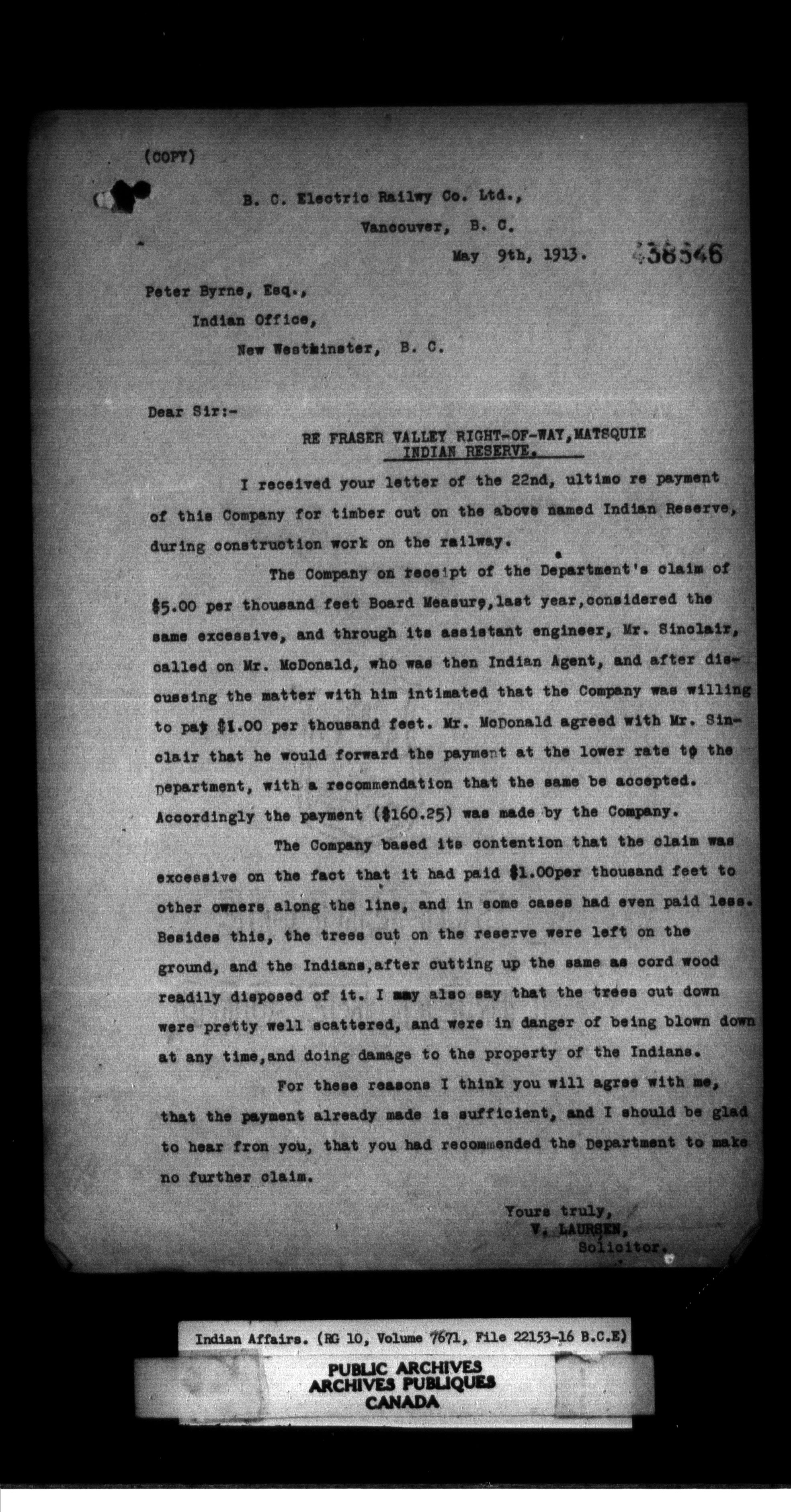 Department of Indian Affairs, Headquarters central registry system : thousand series - 11612