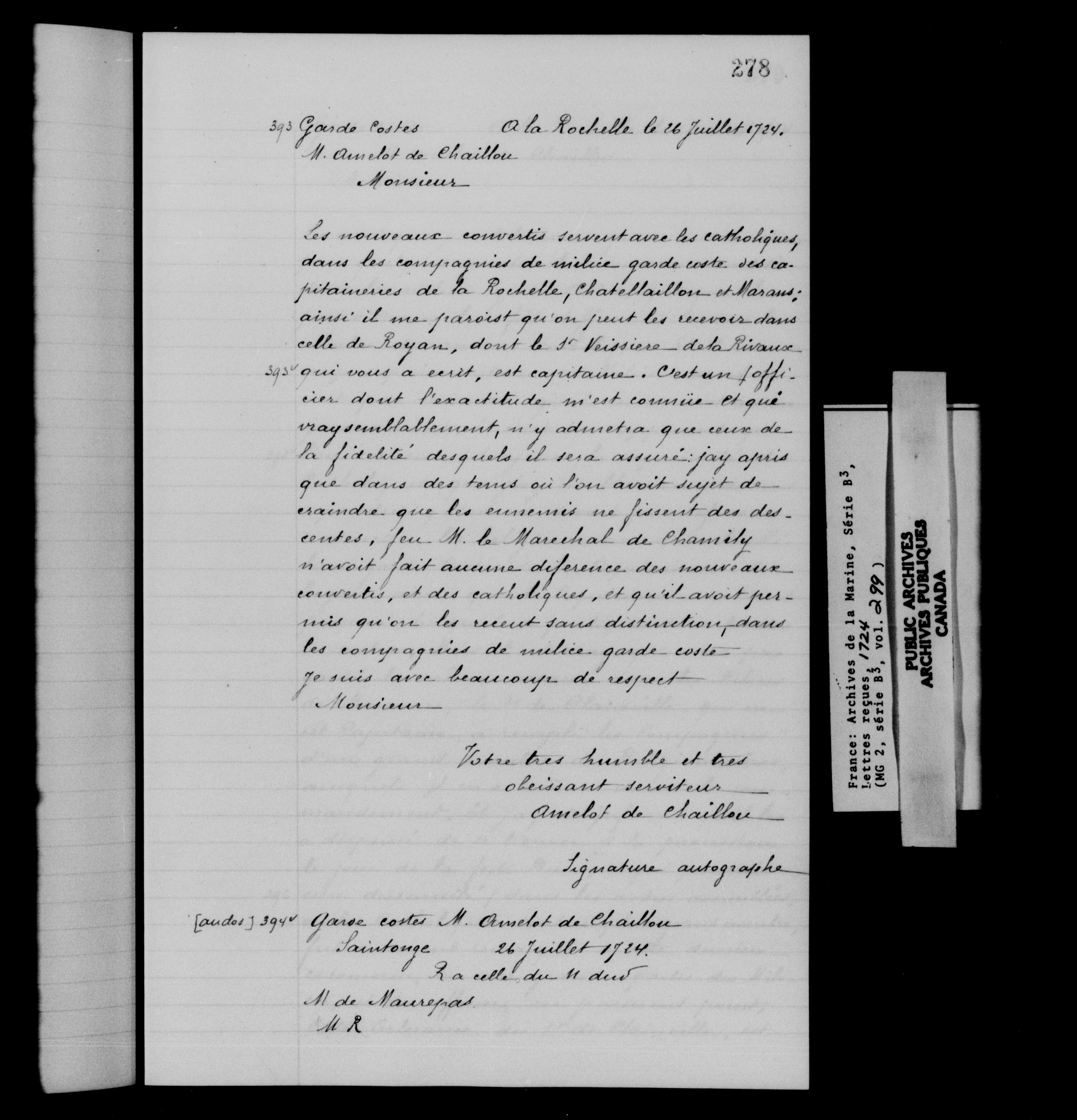 France : Archives de la Marine, Série B3, Décisions, lettres reçues - 11618