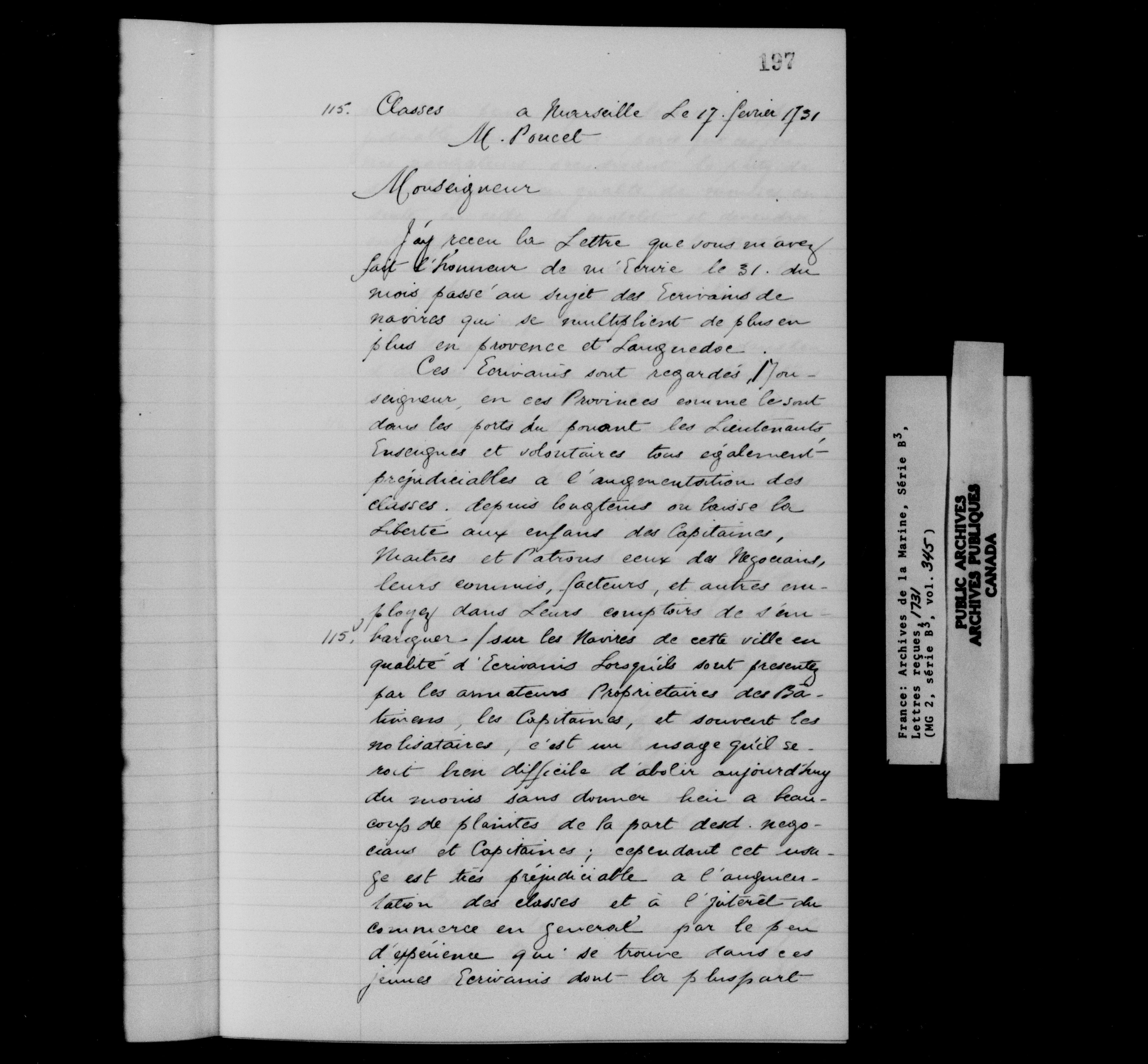 France : Archives de la Marine, Série B3, Décisions, lettres reçues - 11620