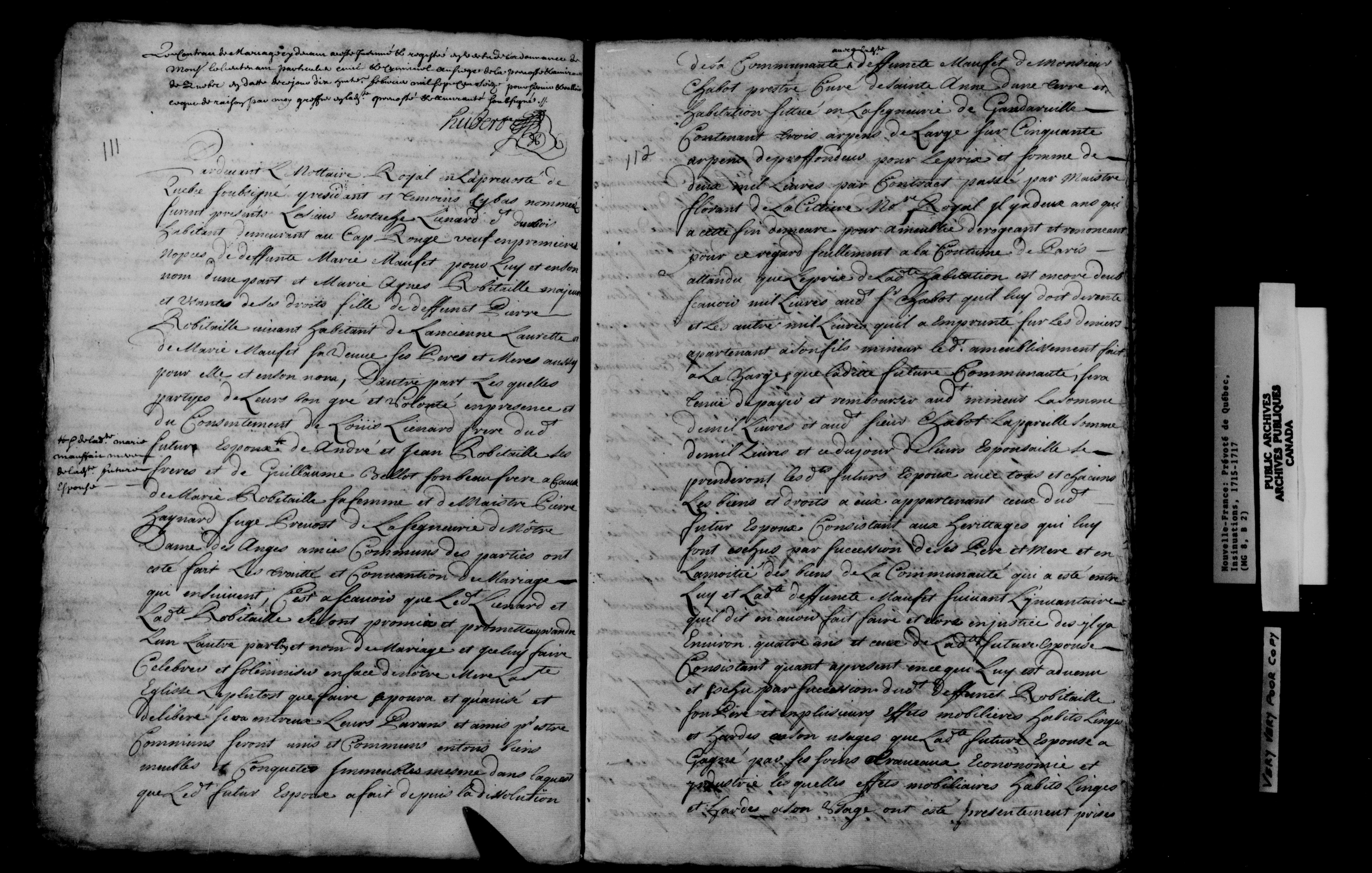 Nouvelle-France: Prévoté de Québec, Insinuations - 11622