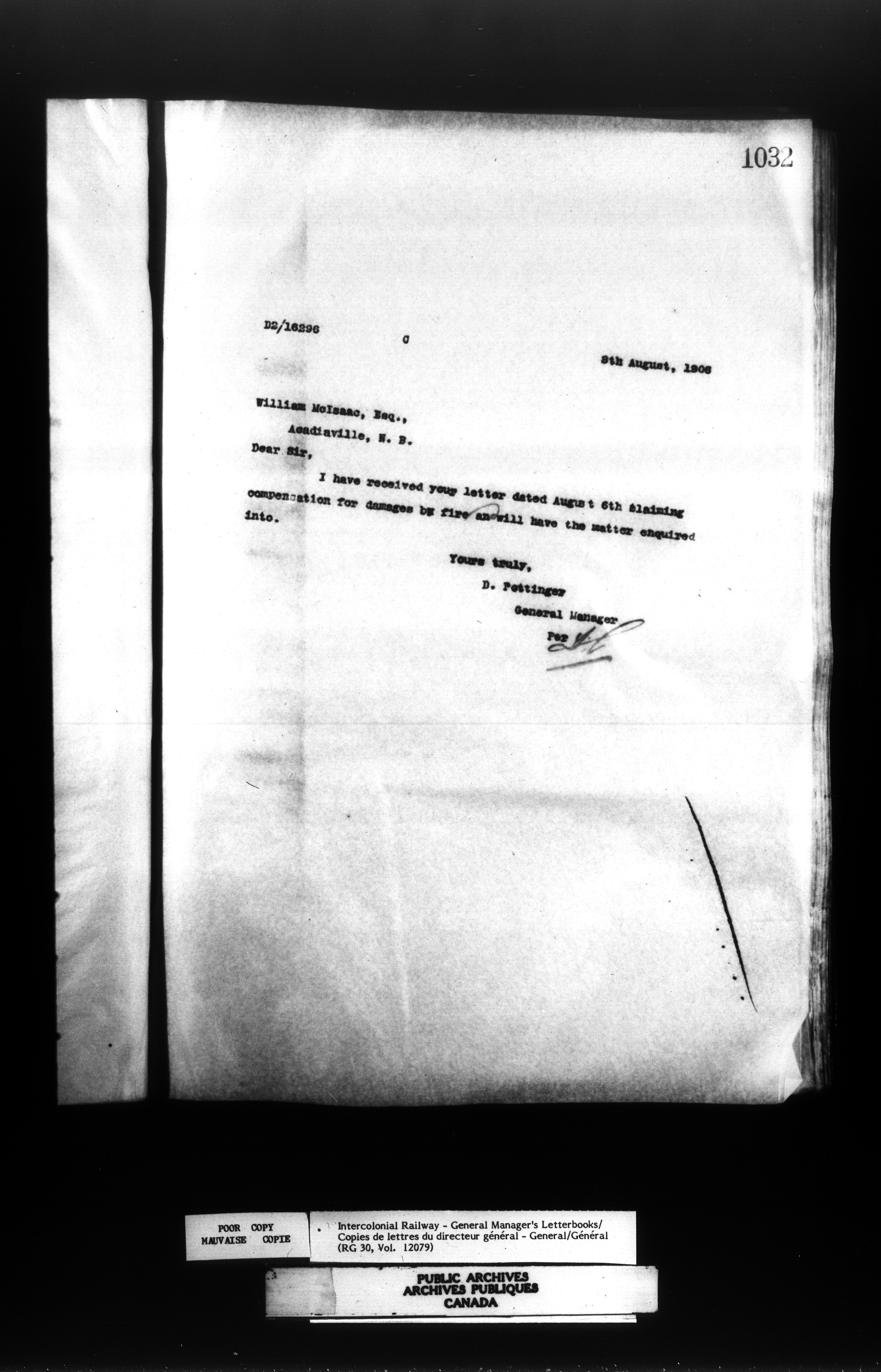 Canadian Government Railways : Office of the General Manager, Outward correspondence - 11681