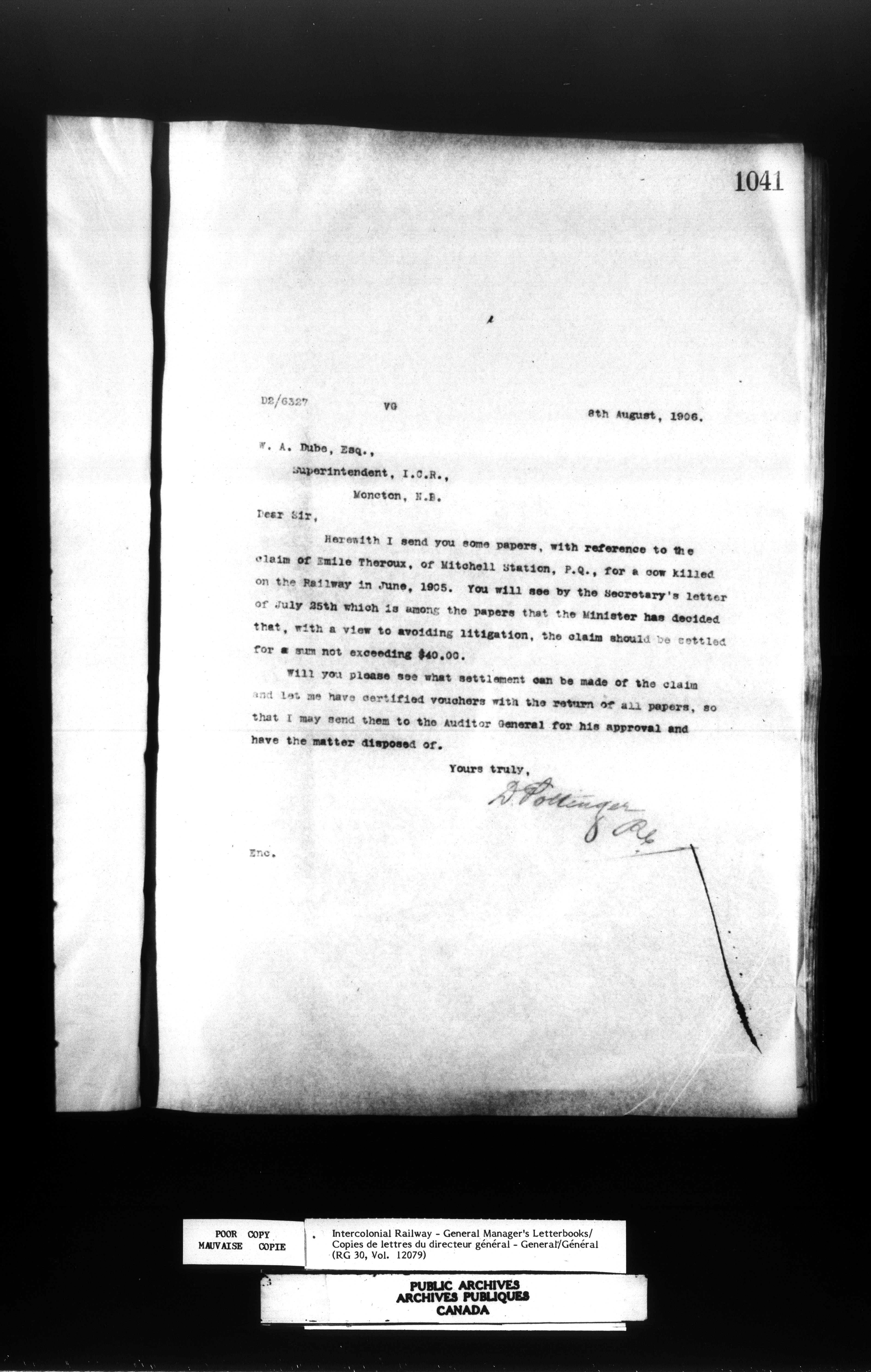 Canadian Government Railways : Office of the General Manager, Outward correspondence - 11681