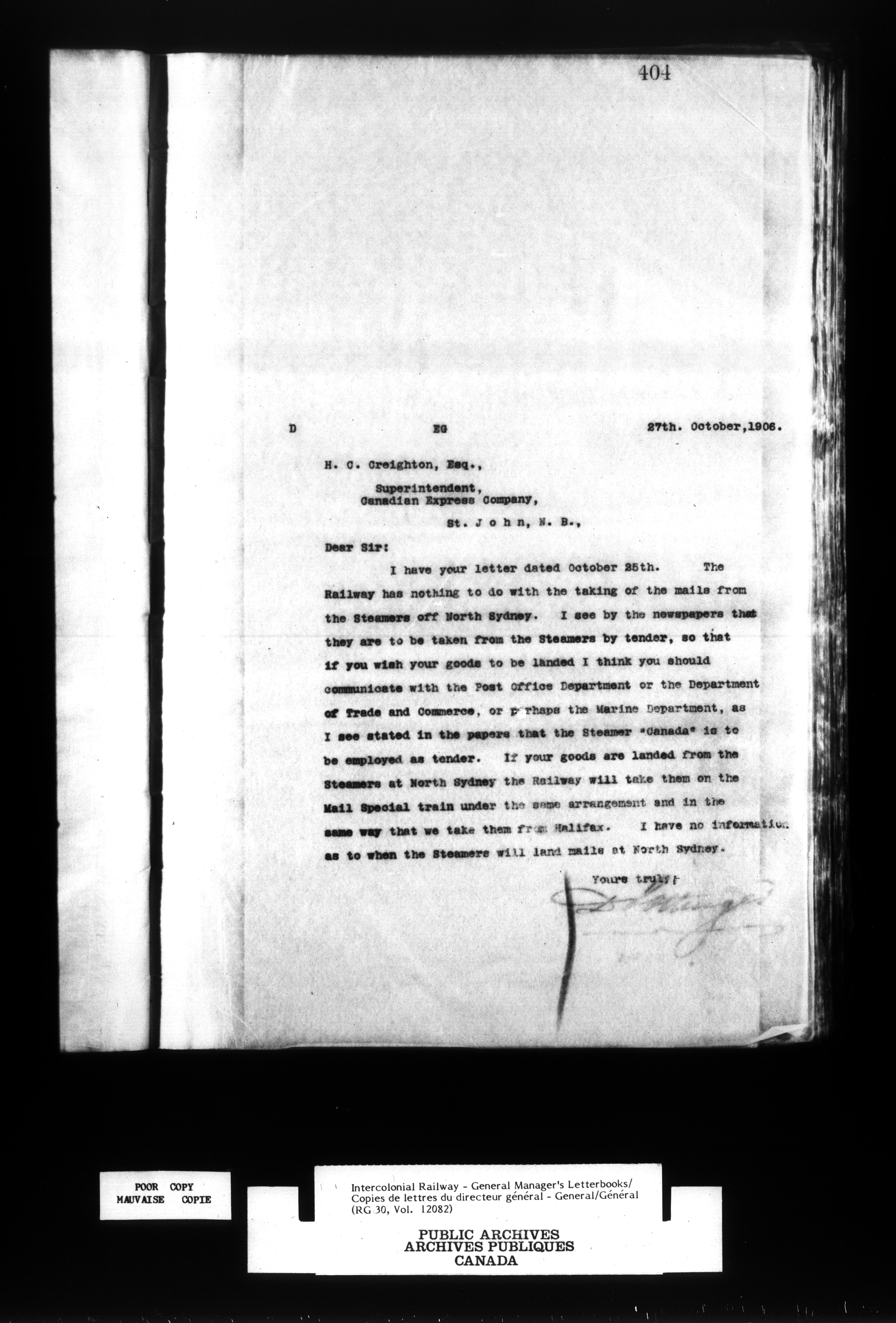 Canadian Government Railways : Office of the General Manager, Outward correspondence - 11684