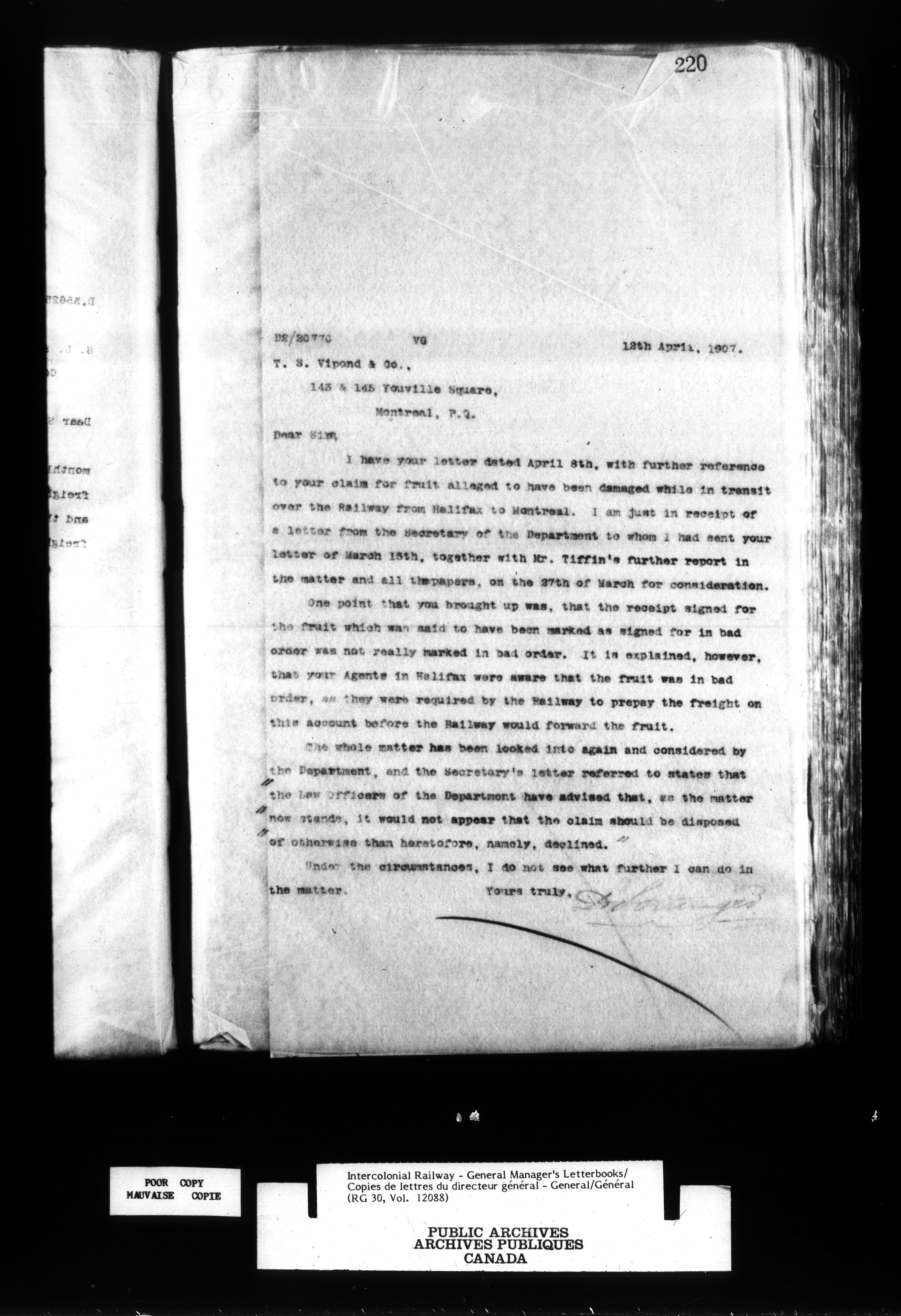 Canadian Government Railways : Office of the General Manager, Outward correspondence - 11689