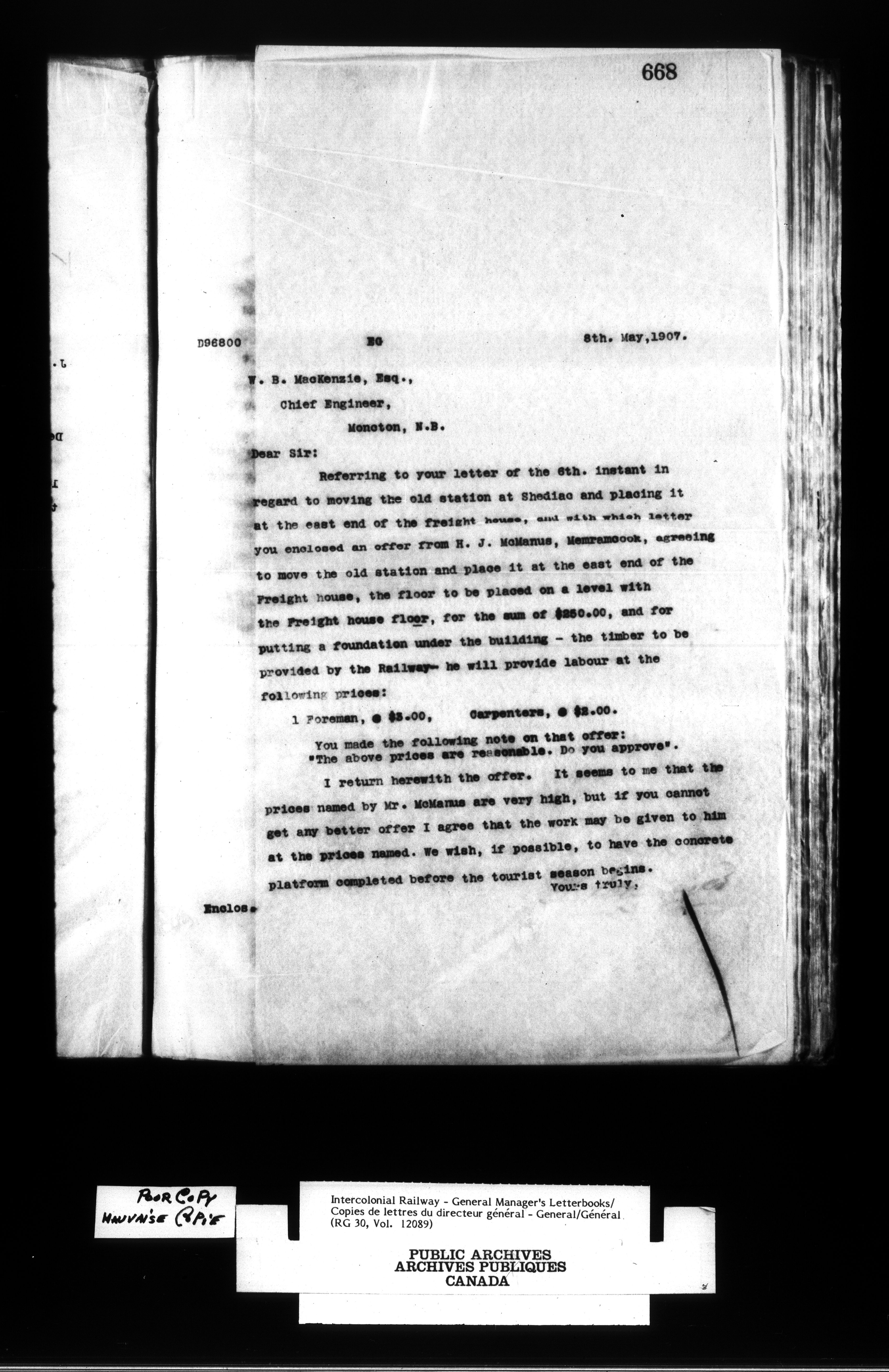 Canadian Government Railways : Office of the General Manager, Outward correspondence - 11690