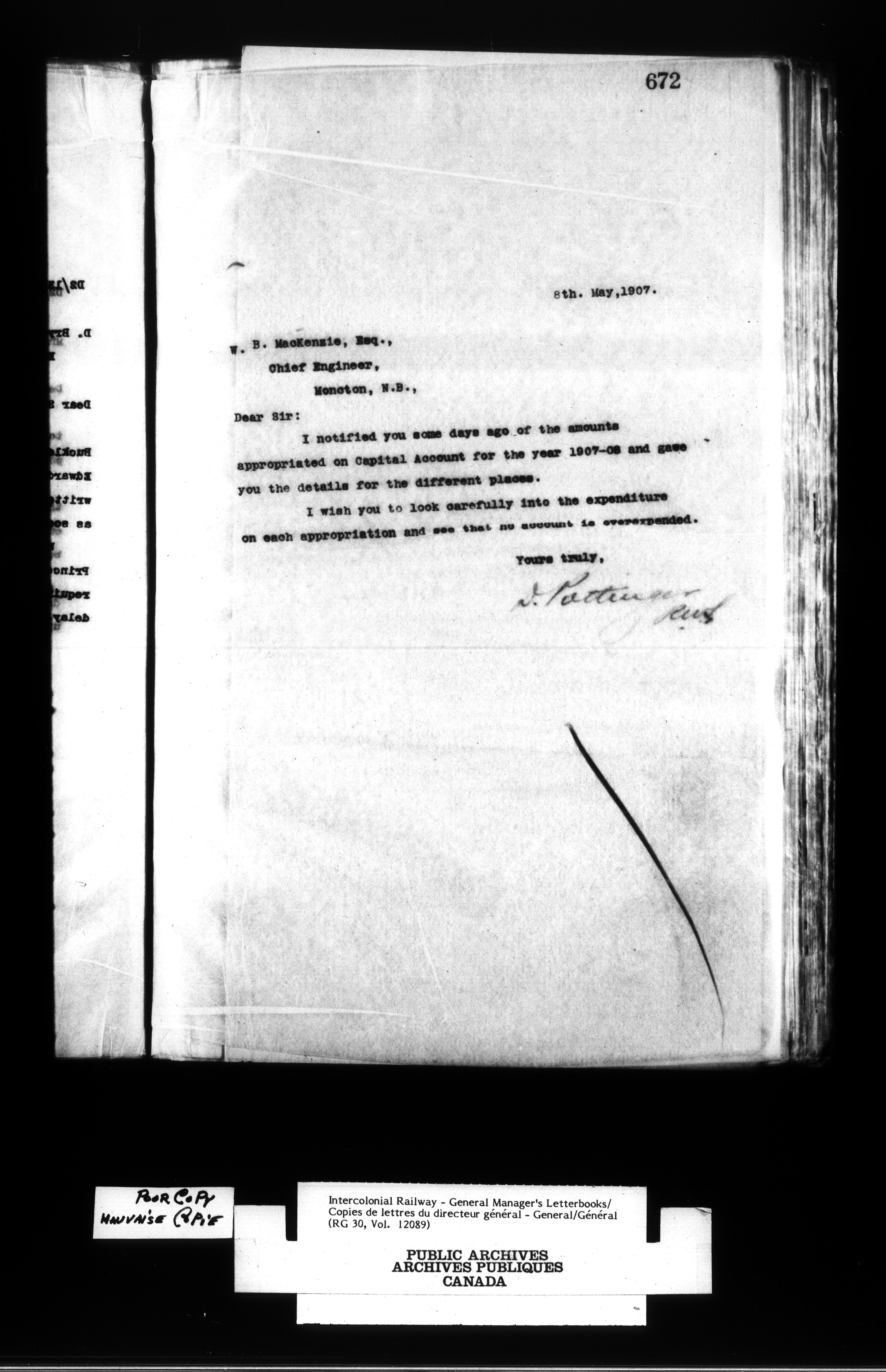 Canadian Government Railways : Office of the General Manager, Outward correspondence - 11690