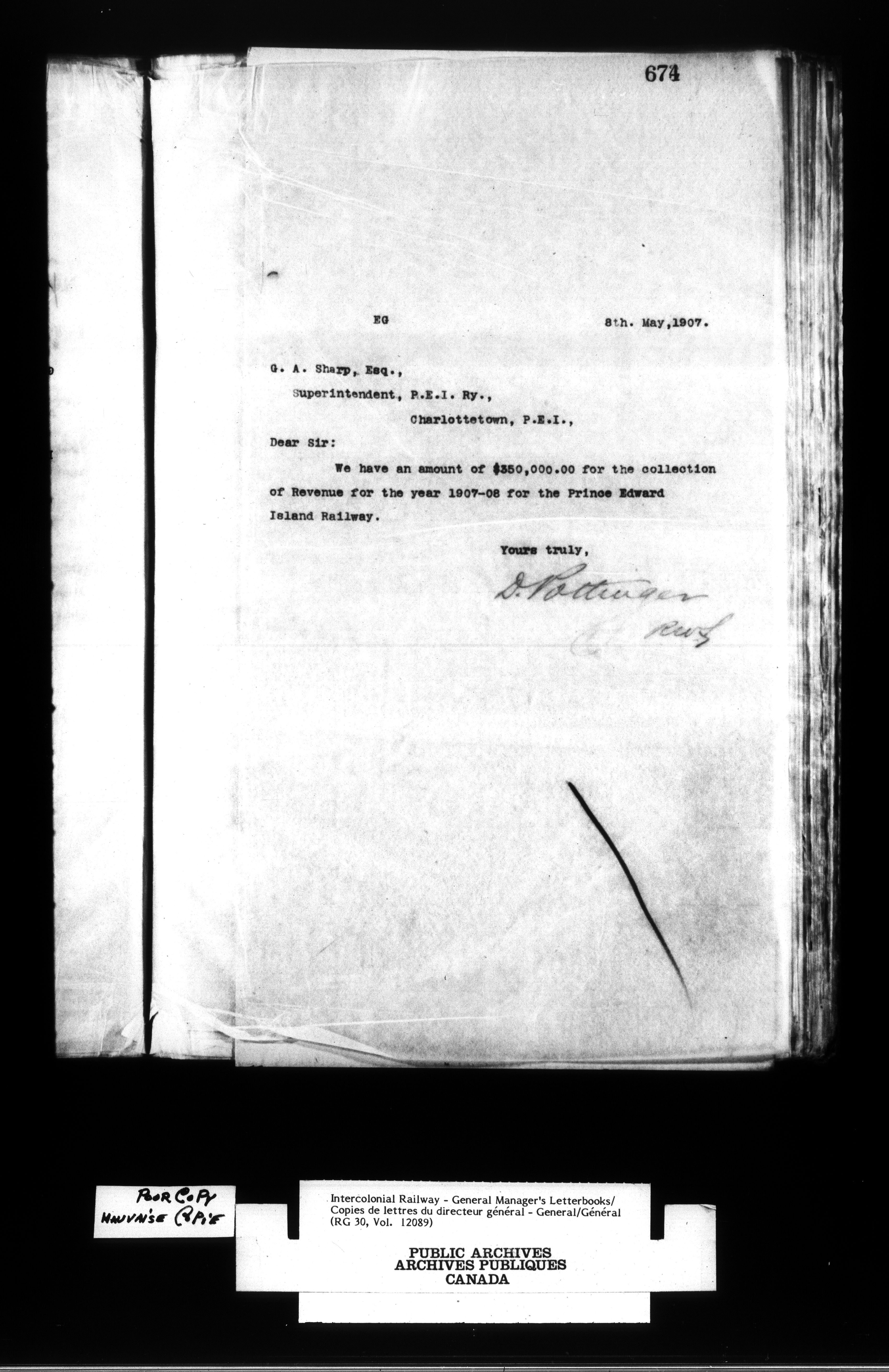 Canadian Government Railways : Office of the General Manager, Outward correspondence - 11690