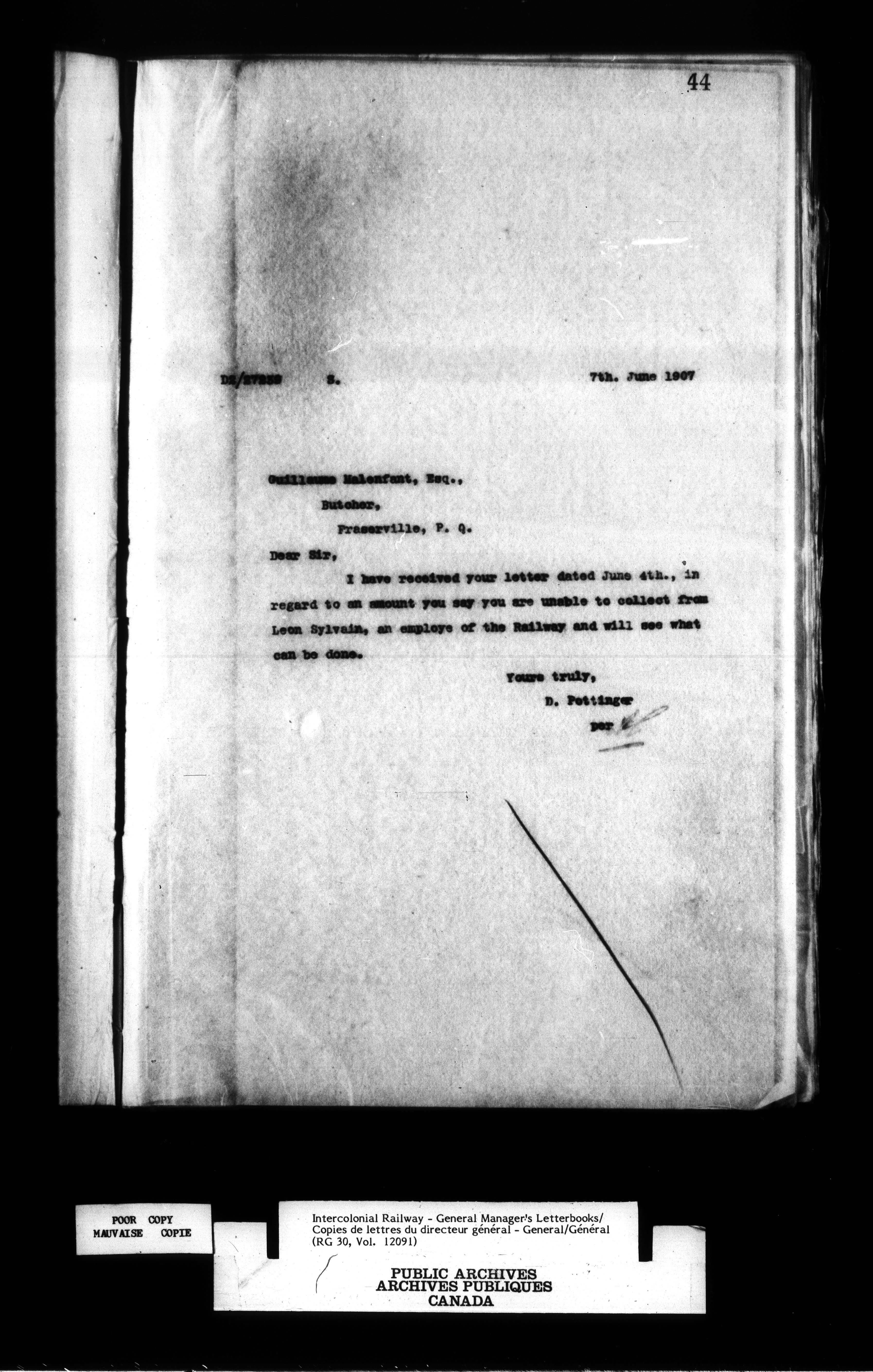 Canadian Government Railways : Office of the General Manager, Outward correspondence - 11691