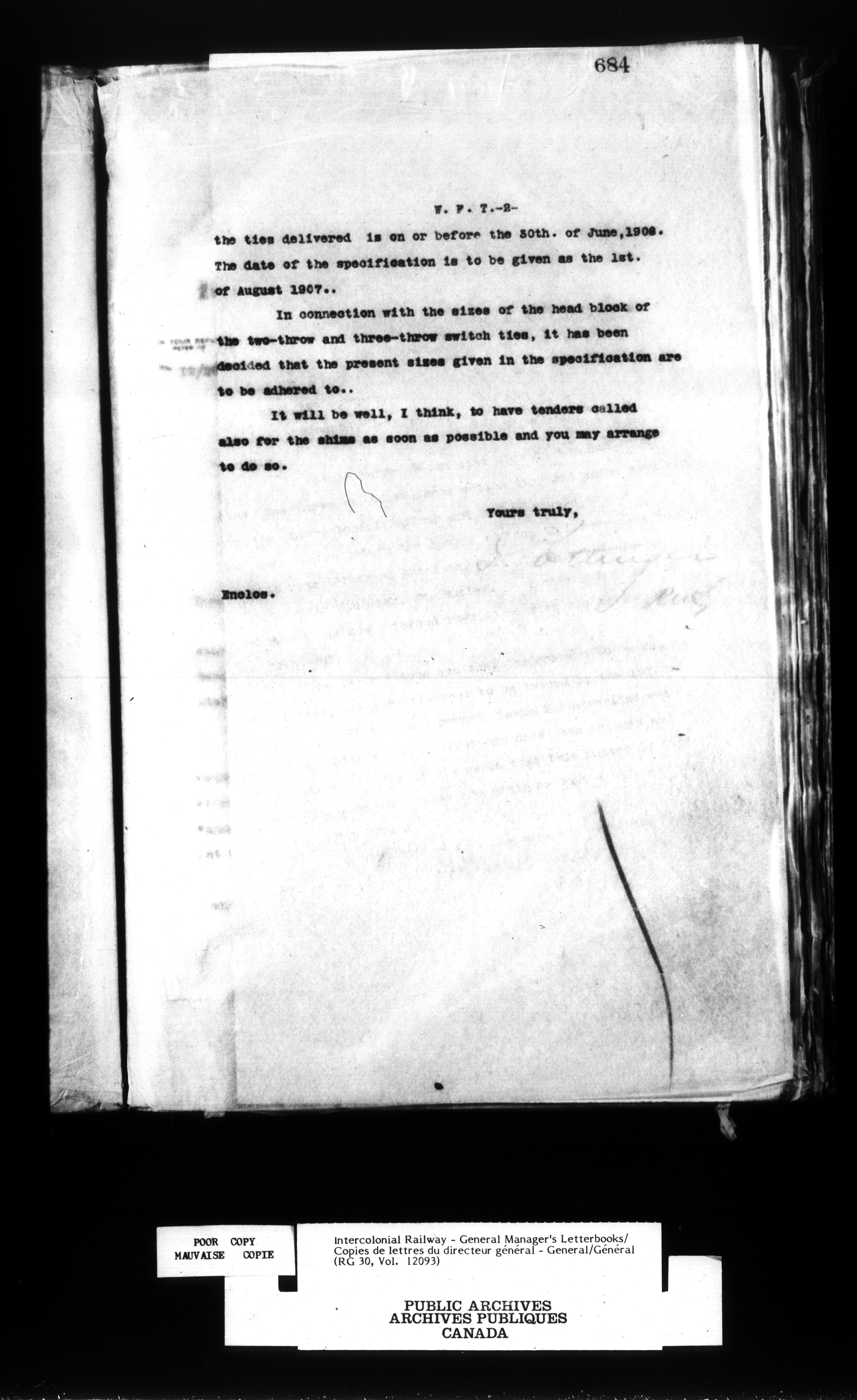 Canadian Government Railways : Office of the General Manager, Outward correspondence - 11692