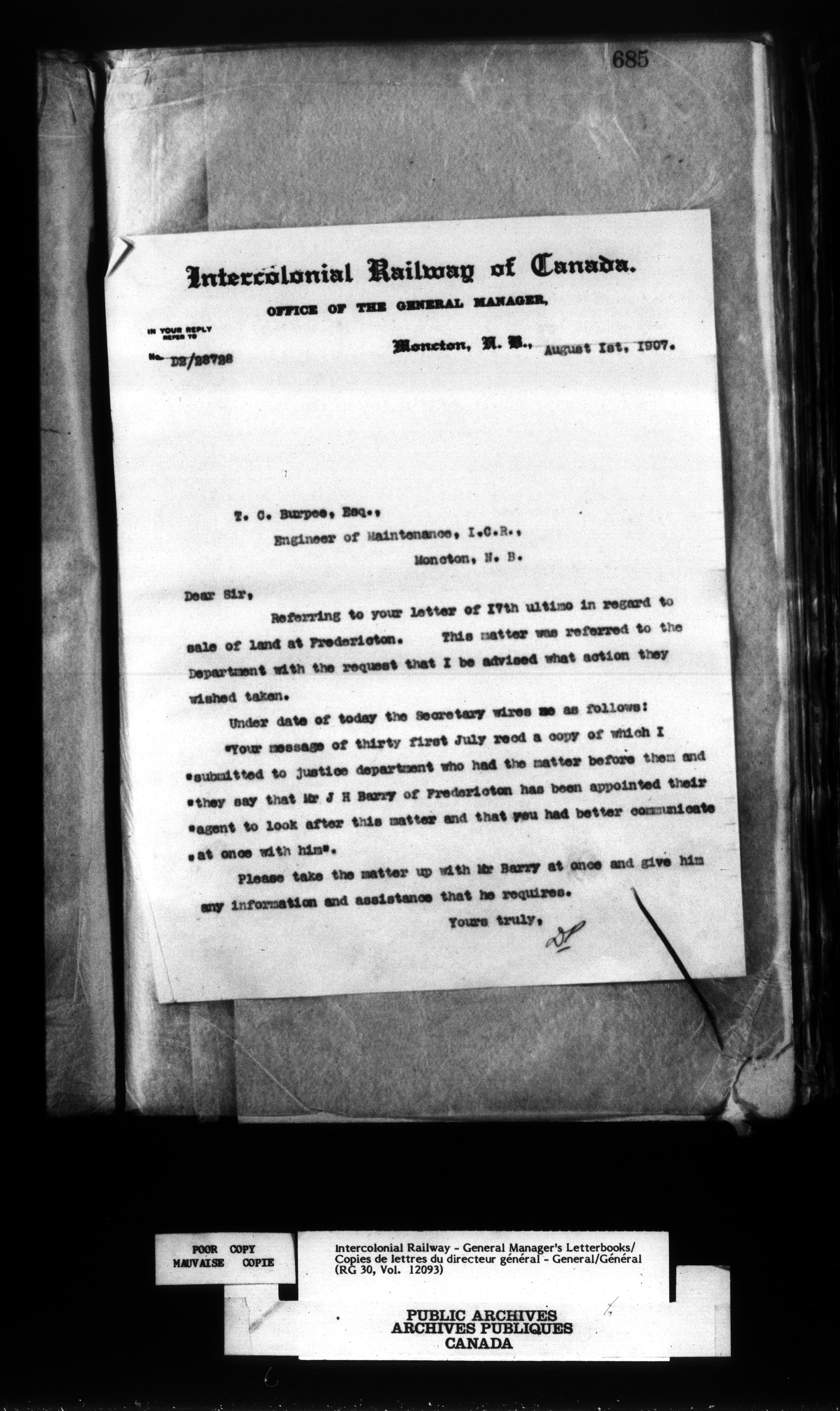 Canadian Government Railways : Office of the General Manager, Outward correspondence - 11692