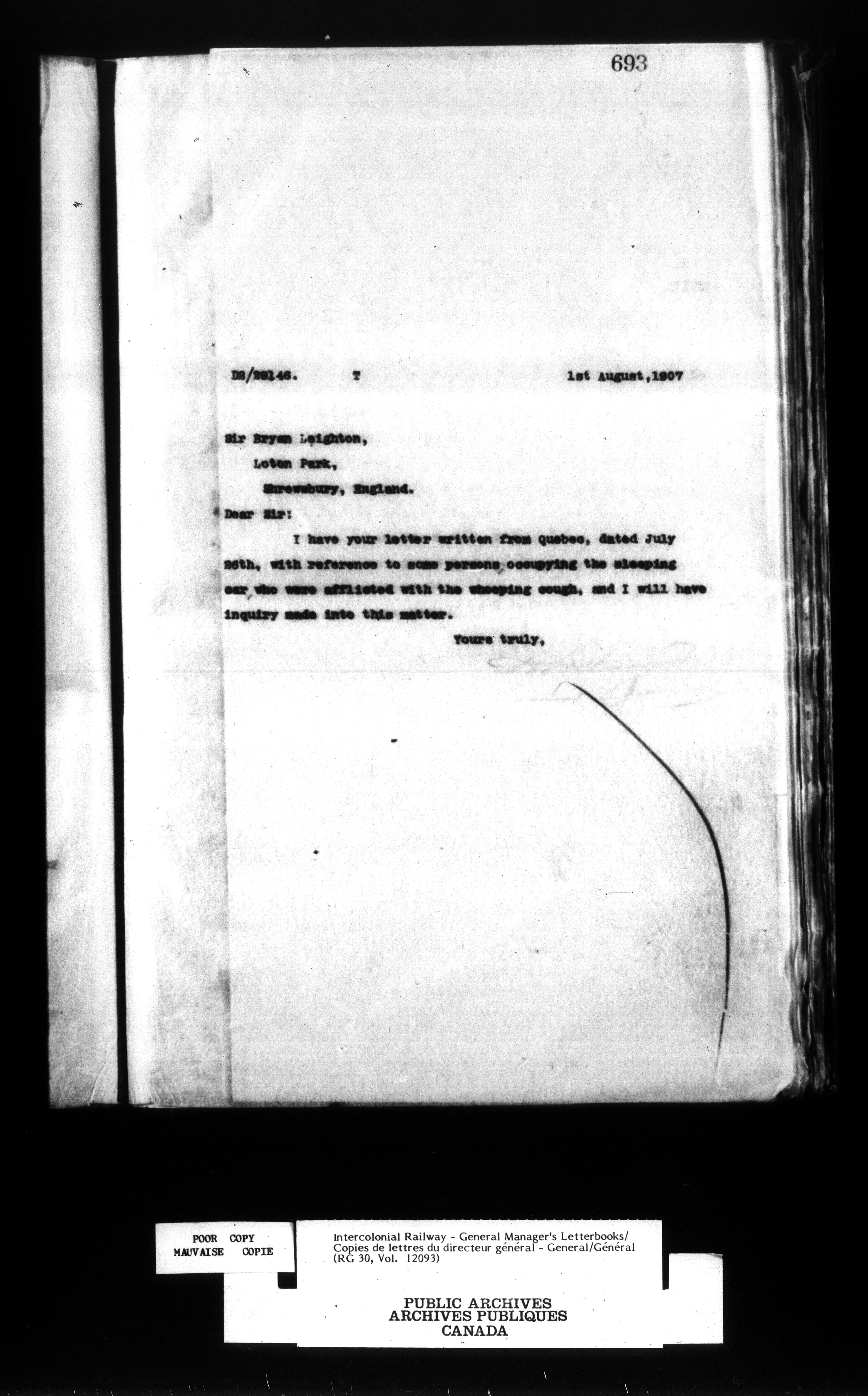 Canadian Government Railways : Office of the General Manager, Outward correspondence - 11692