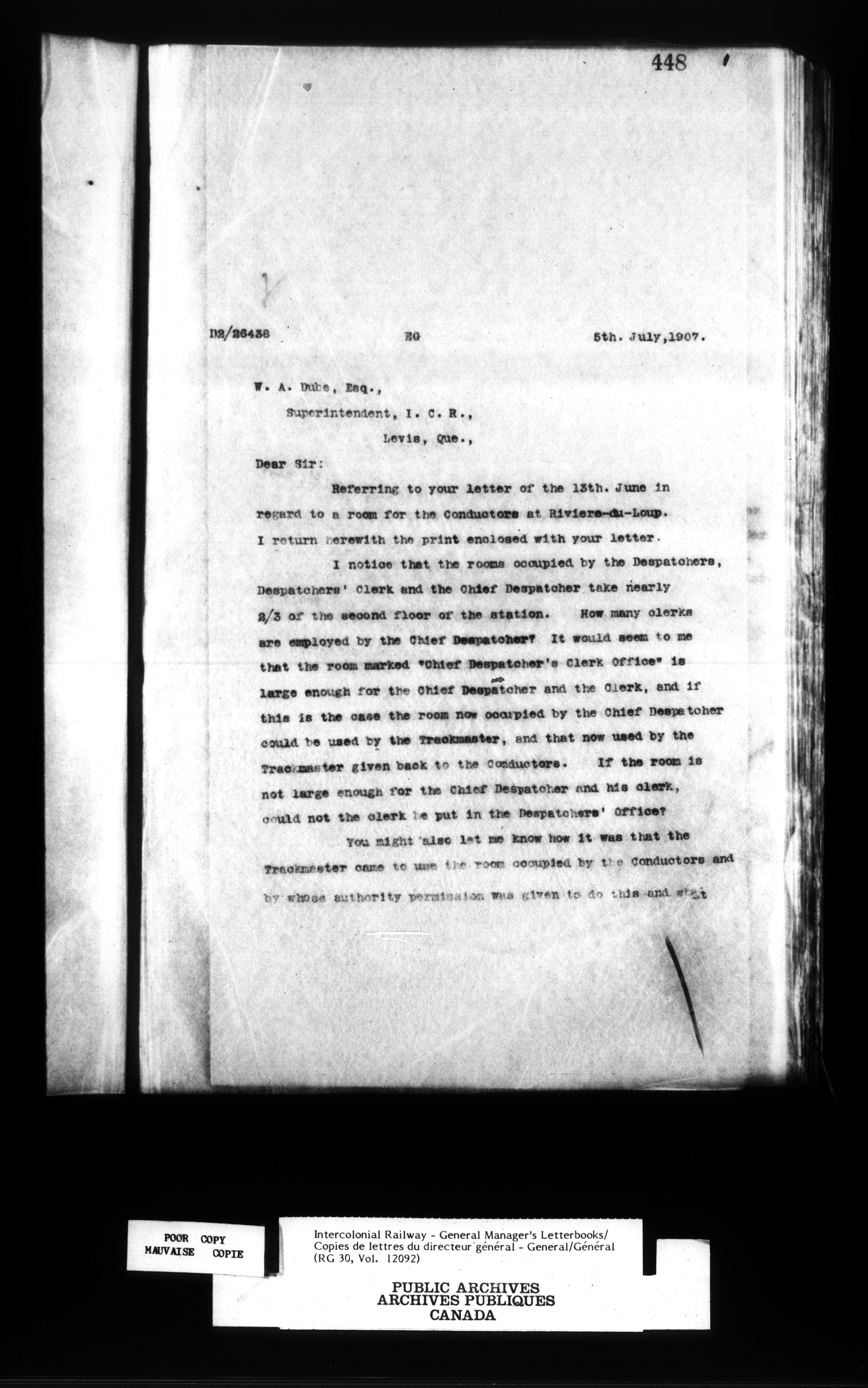 Canadian Government Railways : Office of the General Manager, Outward correspondence - 11692