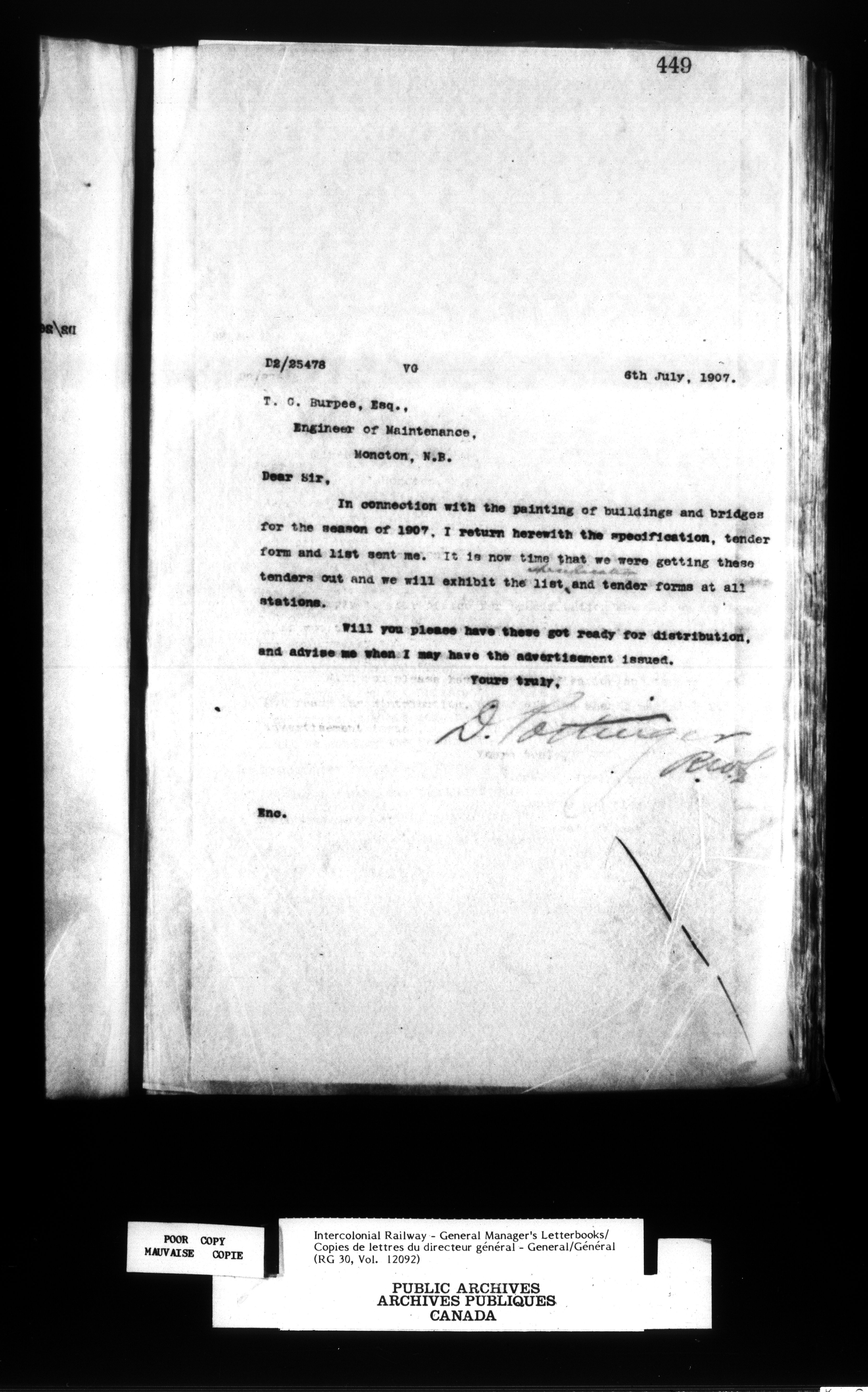 Canadian Government Railways : Office of the General Manager, Outward correspondence - 11692