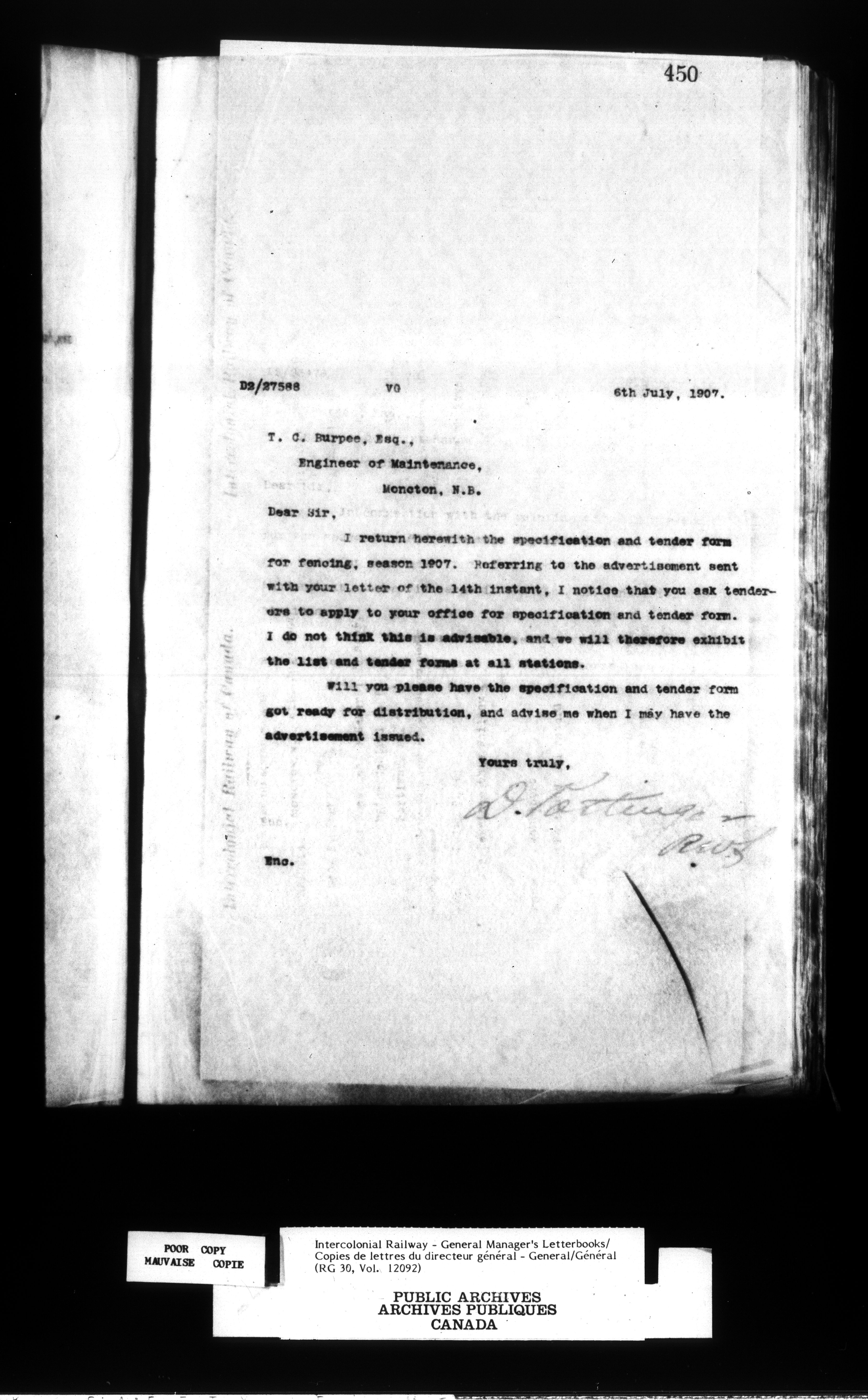 Canadian Government Railways : Office of the General Manager, Outward correspondence - 11692