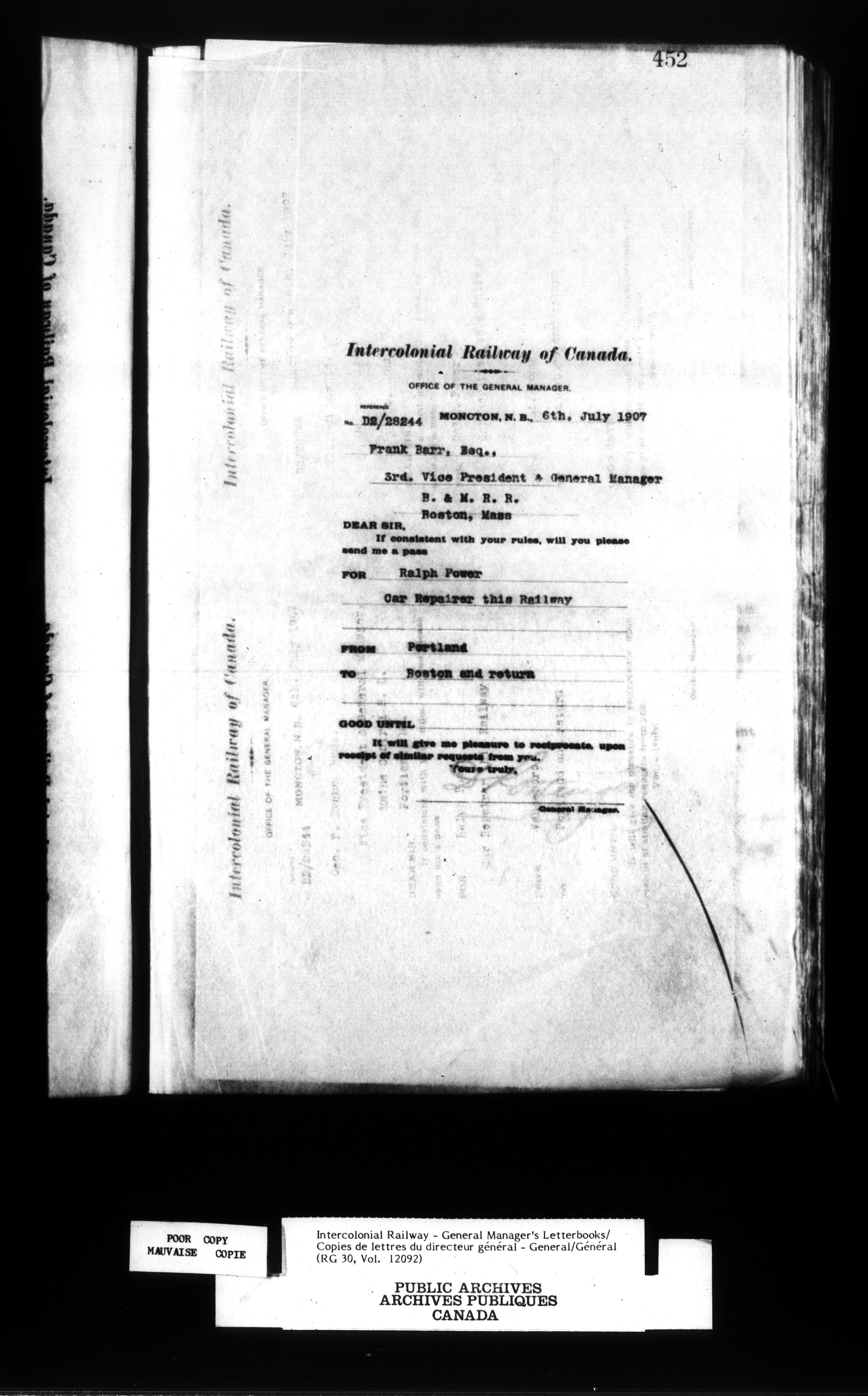 Canadian Government Railways : Office of the General Manager, Outward correspondence - 11692