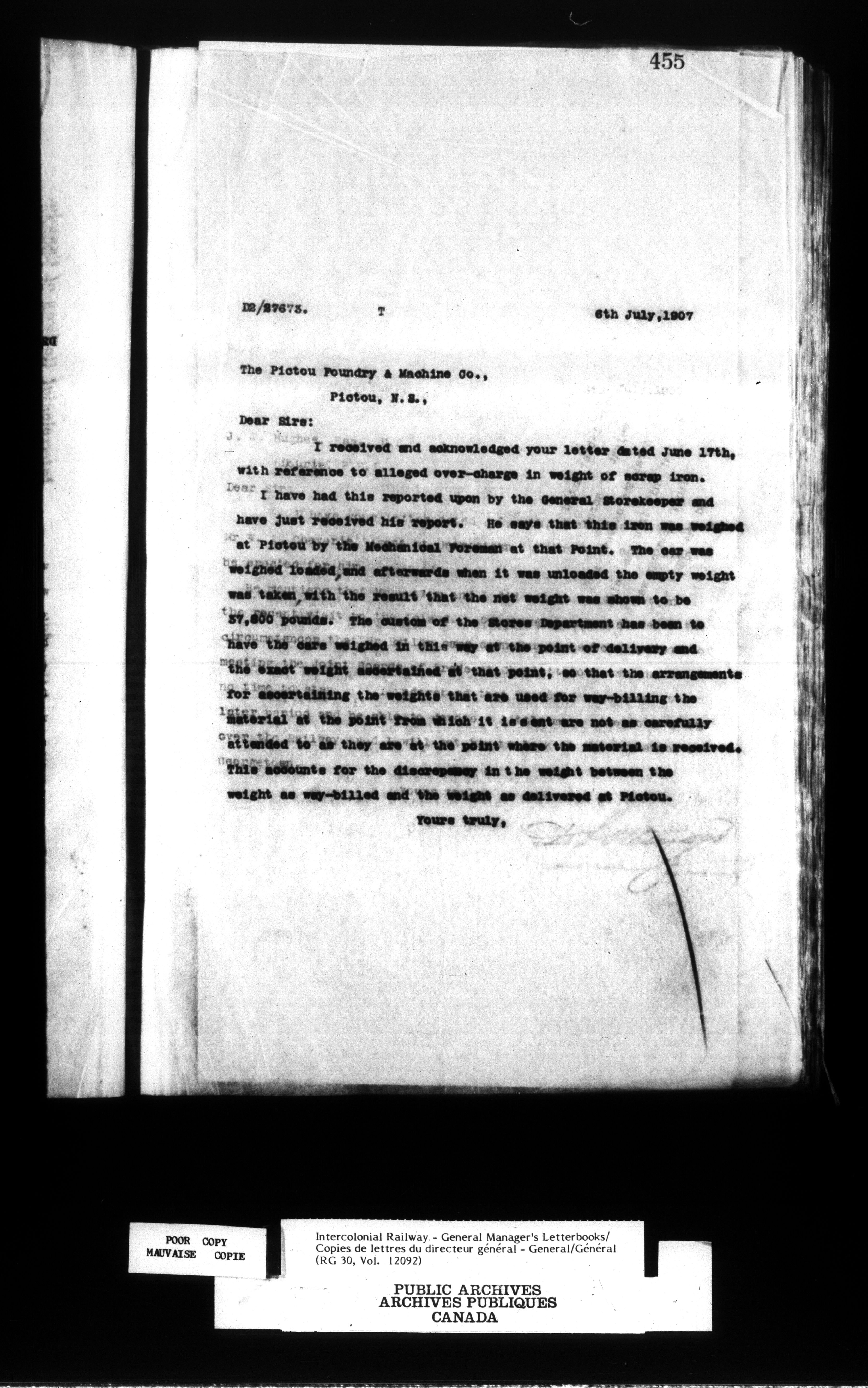 Canadian Government Railways : Office of the General Manager, Outward correspondence - 11692