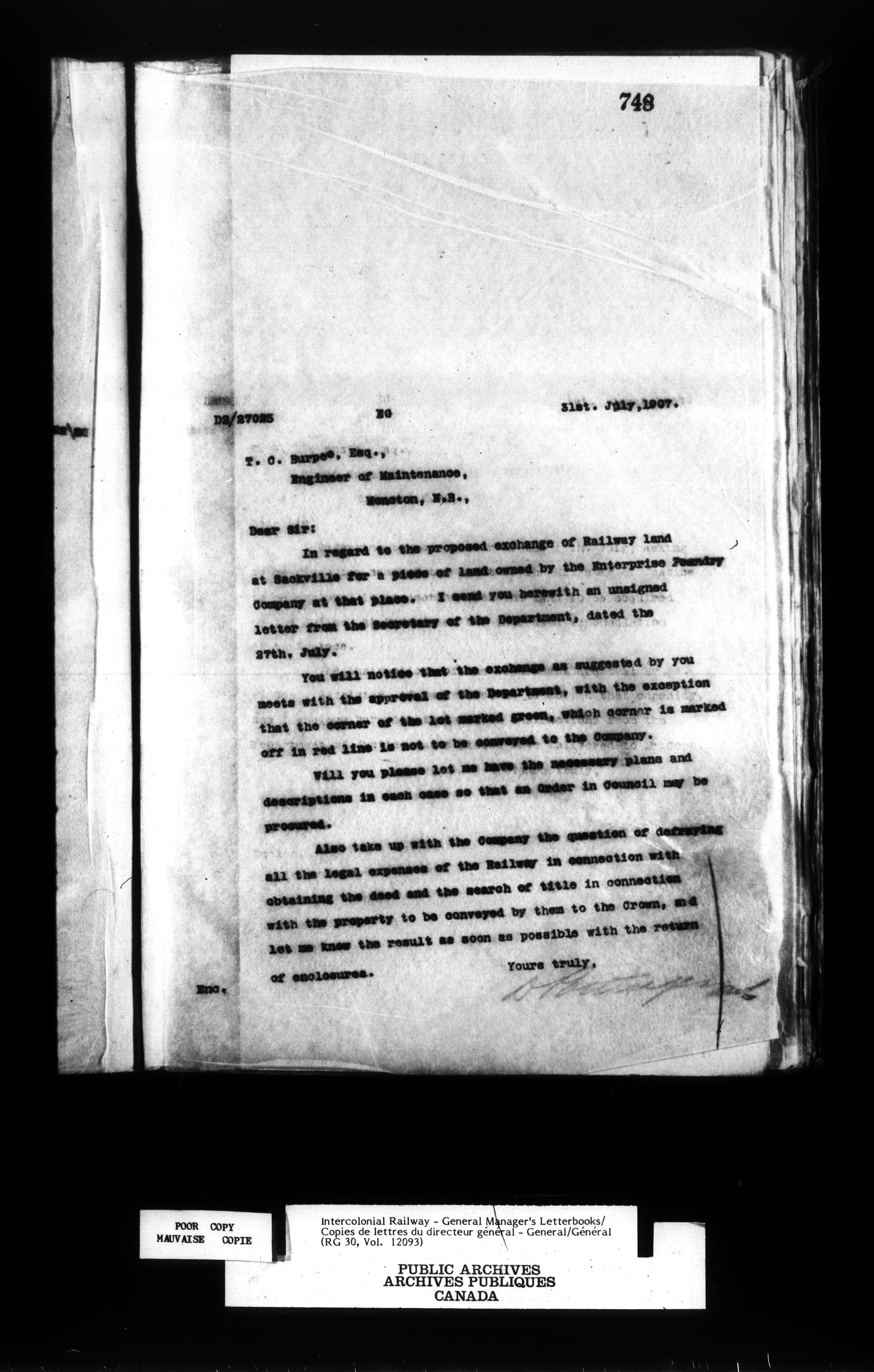 Canadian Government Railways : Office of the General Manager, Outward correspondence - 11693