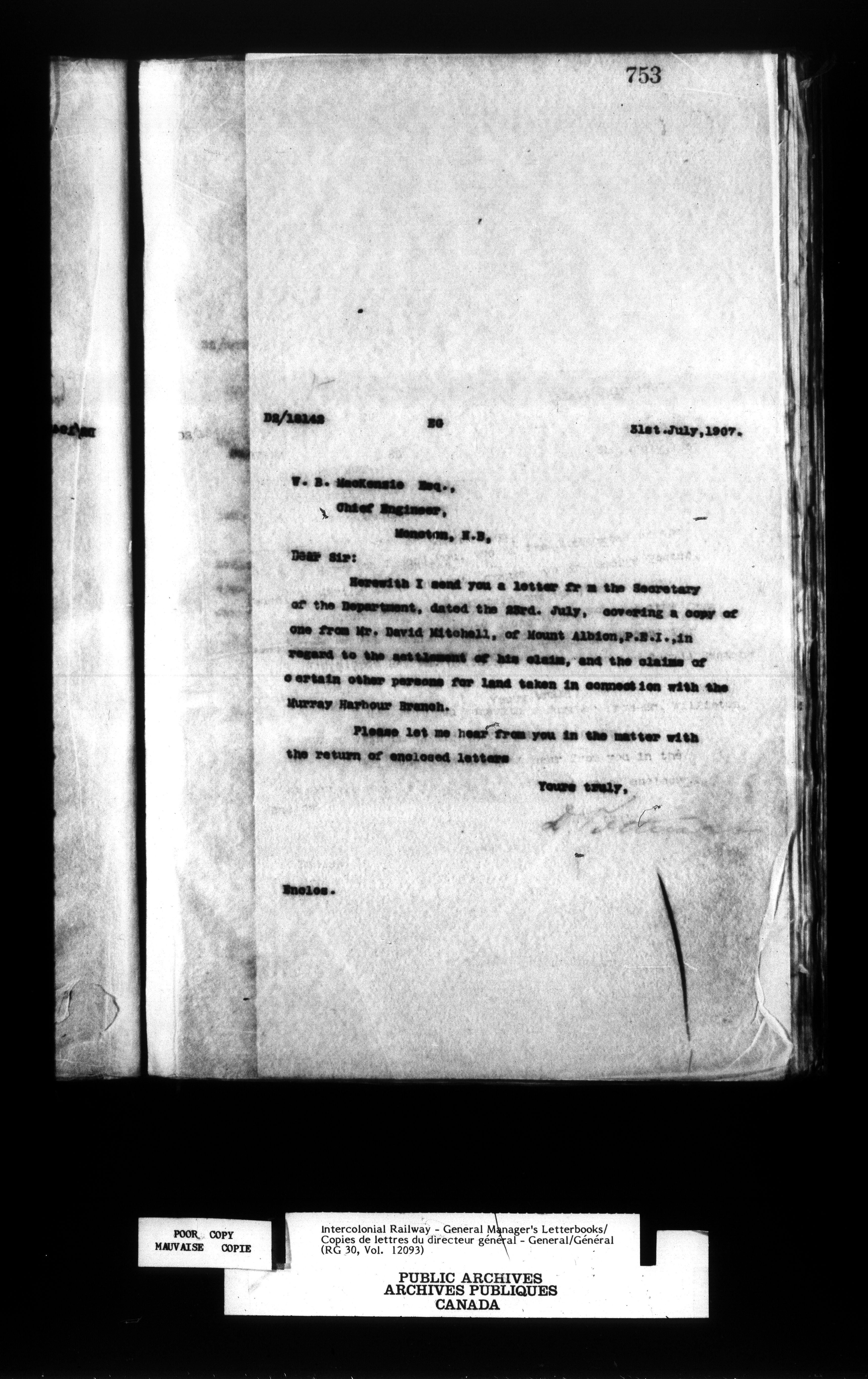 Canadian Government Railways : Office of the General Manager, Outward correspondence - 11693