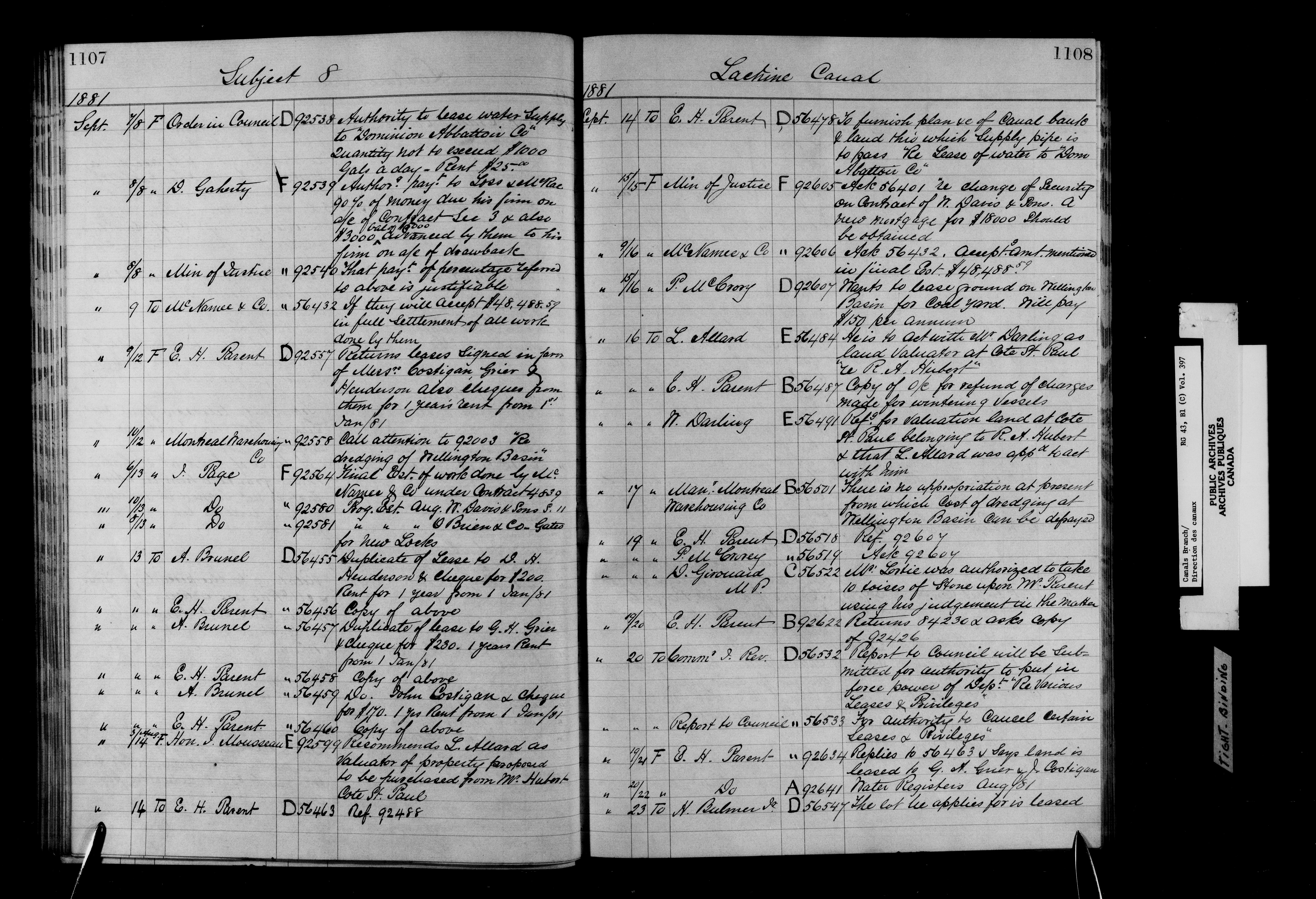 Department of Railways and Canals, Canal Branch : correspondence, registers and indexes, 1838-1936 : C-11696