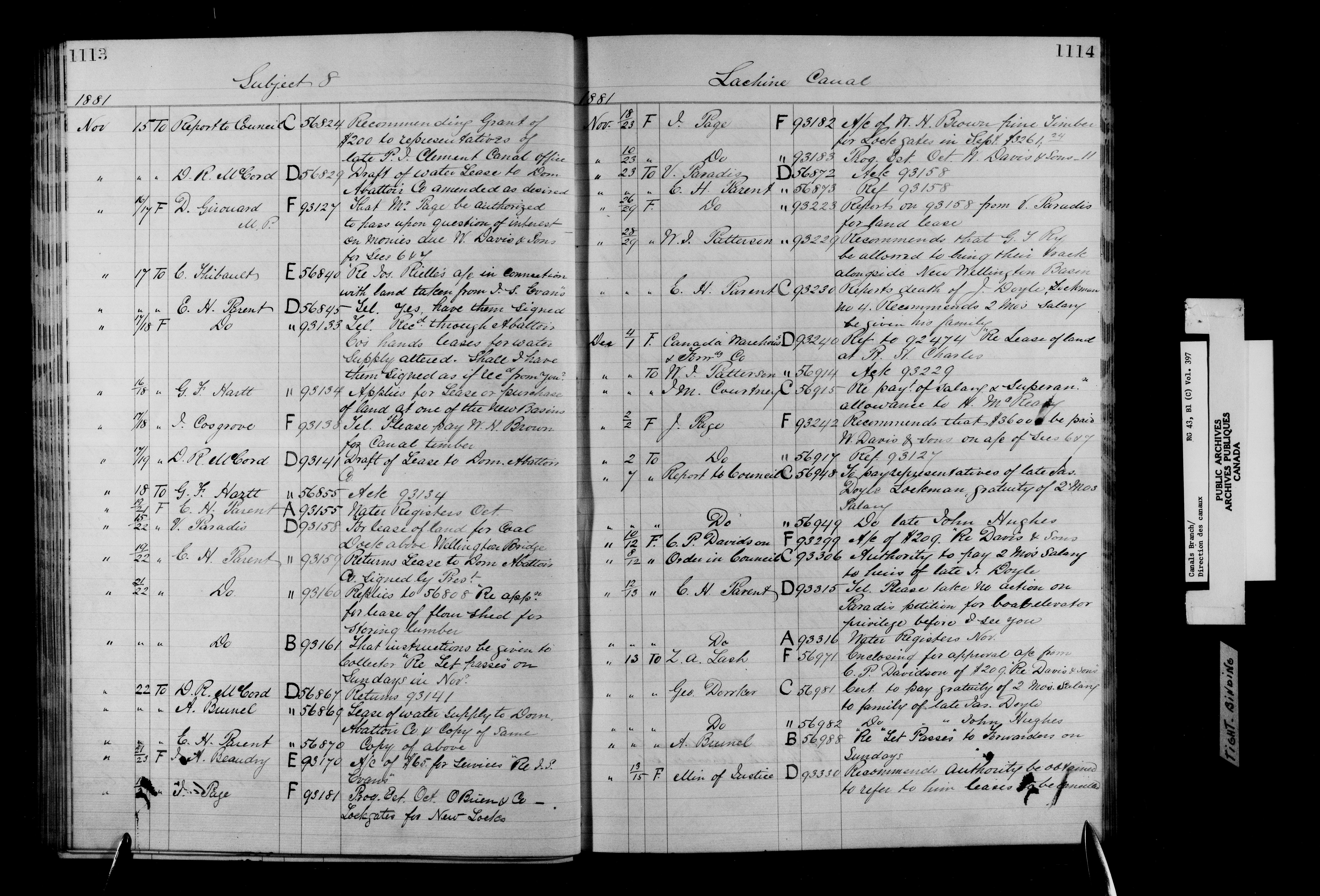 Department of Railways and Canals, Canal Branch : correspondence, registers and indexes, 1838-1936 : C-11696